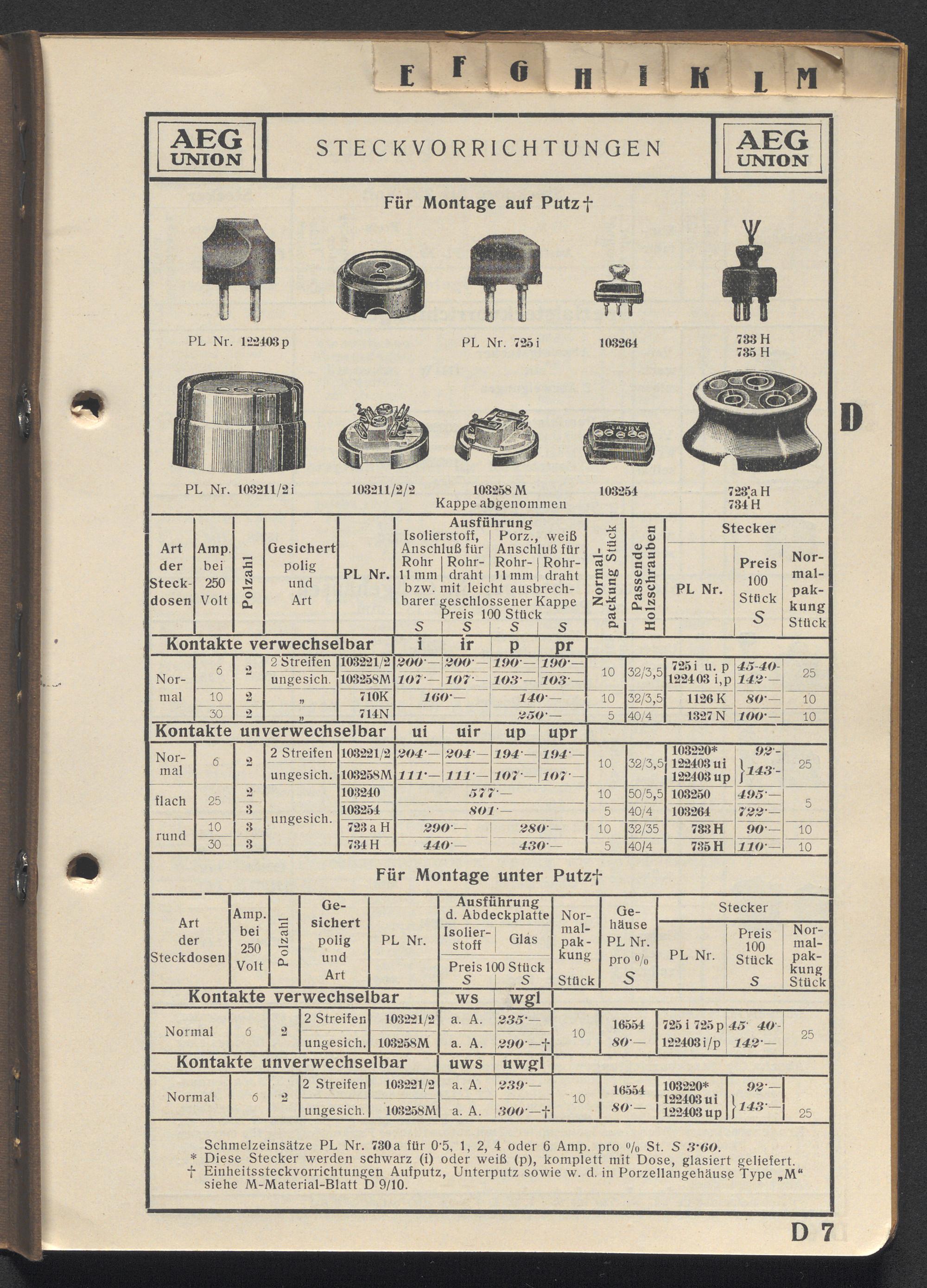 Preisliste über Installationsmaterial etc. / AEG-Union Elektrizitäts-Gesellschaft