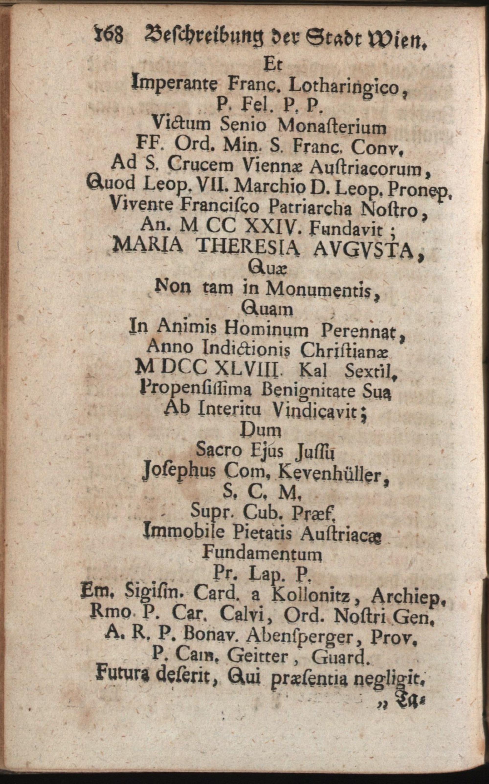 2,1 (1766) Von denen Kirchen, geistlichen Collegien und Clöstern in der Stadt, mit derselben in Kupffer gestochenen Prospecten / Heraus gegeben von P. Mathias Fuhrmann, Des H. Pauli ersten Einsiedlers, der Oesterreichischen Provinz General-Definitor