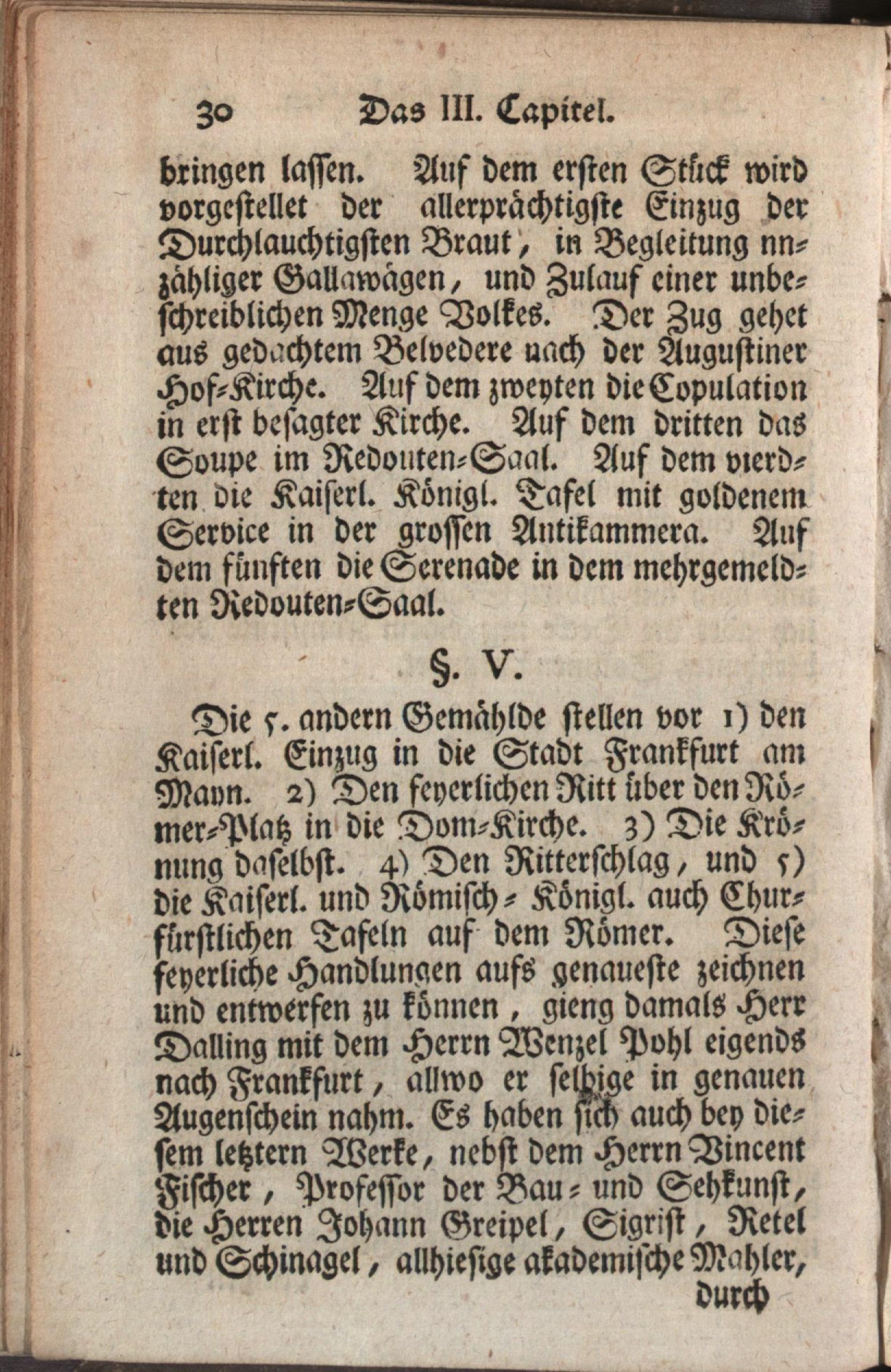 3 (1770) Von den weltlichen Gebäuden, von eingeführten hohen Ritter- und anderen Orden am Kaiserl. Königl. Hofe : von den Schatzkammern, Münzkabinetern, Bildergallerien, Bibliotheken, Akademien, Collegien, Seminarien, milden Stiftungen, Spitälern, Waisen- und Versorgungshäusern der Armen; von Begräbnisgrüften des Erzhauses Oesterreich und anderer hochadelichen Familien, von Fabriken, Manufacturen, Künstlern, Cameral-Profeßionisten und anderen Merkwürdigkeiten in und vor der Stadt ; Denen Fremden und einheimischen Liebhabern derley Beschreibungen zu Dienst und zu einer weitern Ausführung abgefasset / Heraus gegeben von P. Mathias Fuhrmann, Des H. Pauli ersten Einsiedlers, der Oesterreichischen Provinz General-Definitor