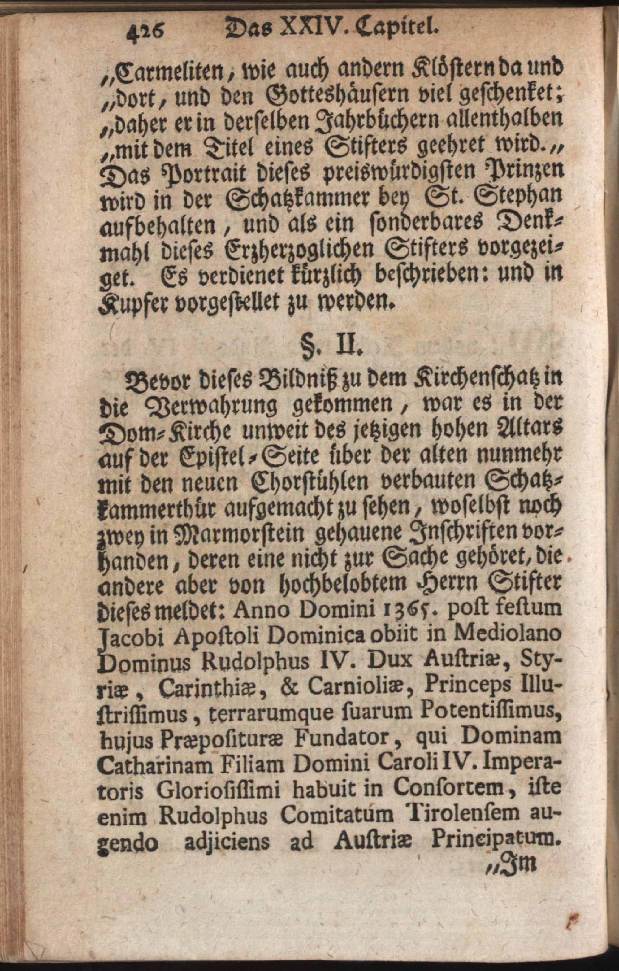 3 (1770) Von den weltlichen Gebäuden, von eingeführten hohen Ritter- und anderen Orden am Kaiserl. Königl. Hofe : von den Schatzkammern, Münzkabinetern, Bildergallerien, Bibliotheken, Akademien, Collegien, Seminarien, milden Stiftungen, Spitälern, Waisen- und Versorgungshäusern der Armen; von Begräbnisgrüften des Erzhauses Oesterreich und anderer hochadelichen Familien, von Fabriken, Manufacturen, Künstlern, Cameral-Profeßionisten und anderen Merkwürdigkeiten in und vor der Stadt ; Denen Fremden und einheimischen Liebhabern derley Beschreibungen zu Dienst und zu einer weitern Ausführung abgefasset / Heraus gegeben von P. Mathias Fuhrmann, Des H. Pauli ersten Einsiedlers, der Oesterreichischen Provinz General-Definitor