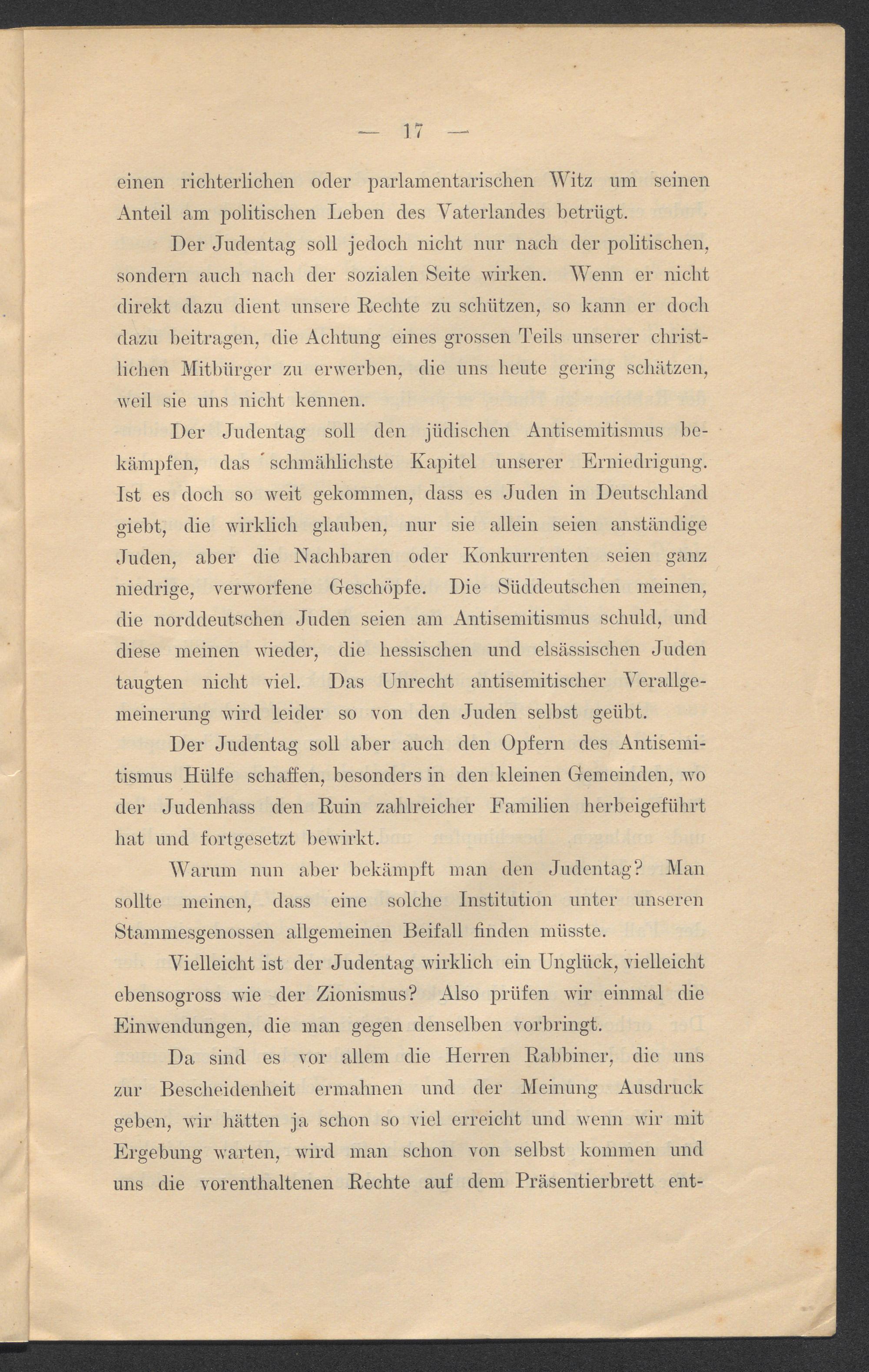 Zionismus und Judentag : Rede gehalten ... bei Gelegenheit des Delegiertentages in Berlin im grossen Saale der Viktoria-Brauerei / von Herrn Rechtsanwalt Dr. Bodenheimer