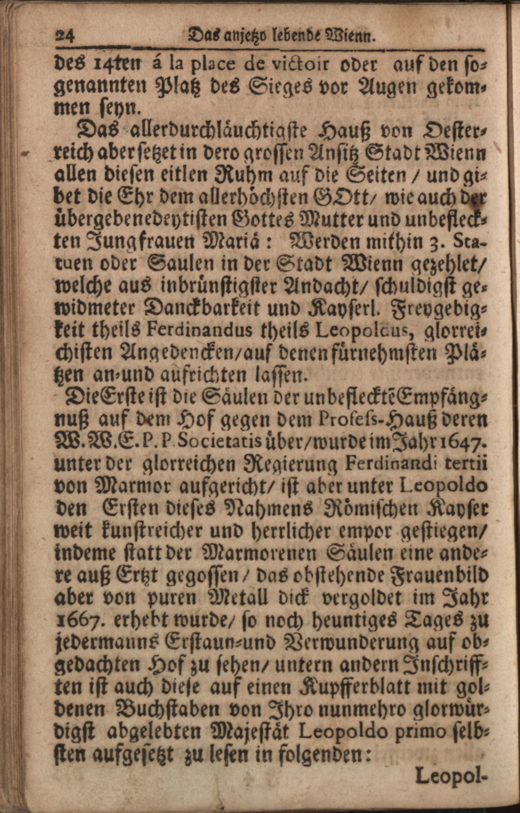1 (1720) Vienna Curiosa & Gratiosa, Oder Das anjetzo Lebende Wienn : Worinnen Alle Sehens- Haupt- und Merckwürdigkeiten, Denckmahl, Antiquitäten, Ursprung, Veränderung, Stifften, Kirchen, Beneficien, Clöster, Pfarreyen, etc. Wie dan auch Bevestigungs-Wercke, Fürstliche, Gräfliche, und Herrliche Palläst, Häuser, Lust-Gärten, Künsten, Wasser-Leittungen, unterirrdische Gäng, Kostbarkeiten, Reichthumben, Bibliothecken, Curiositäten, Kinder-Zucht, Sitten, Sprach- und Lebens-Wandel deren Wienneren auf das genaueste, gleichsam in einem Spiegel, vorgestellet werden. In Zwölff Monathliche Theil abgetheilt, und treu-auffrichtig beschrieben / à qVoDaM sInCero patrIota, aVstrIaCo-VIennensI