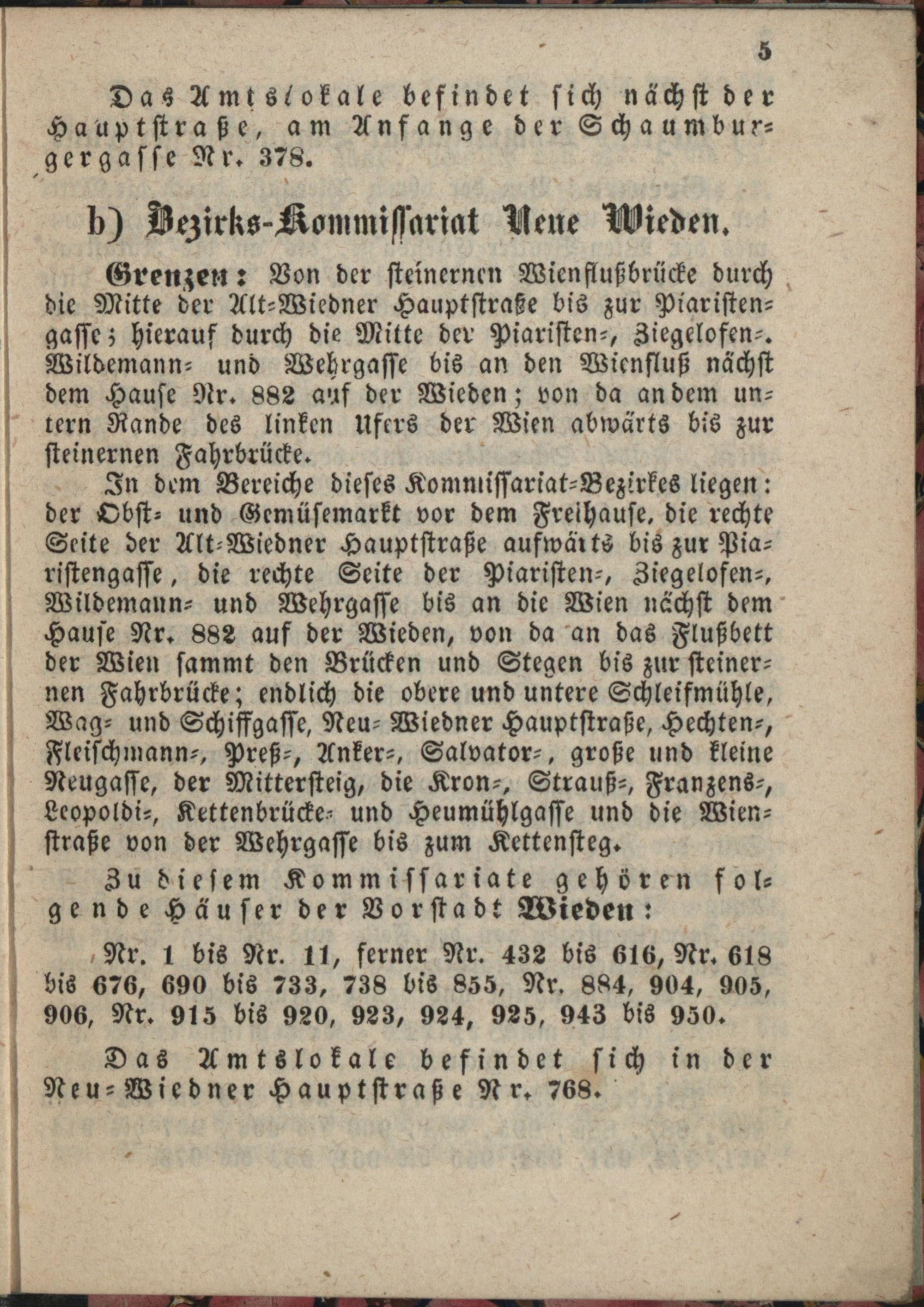 Wien's neue stadthauptmannschaftliche Eintheilung in zwanzig Bezirke