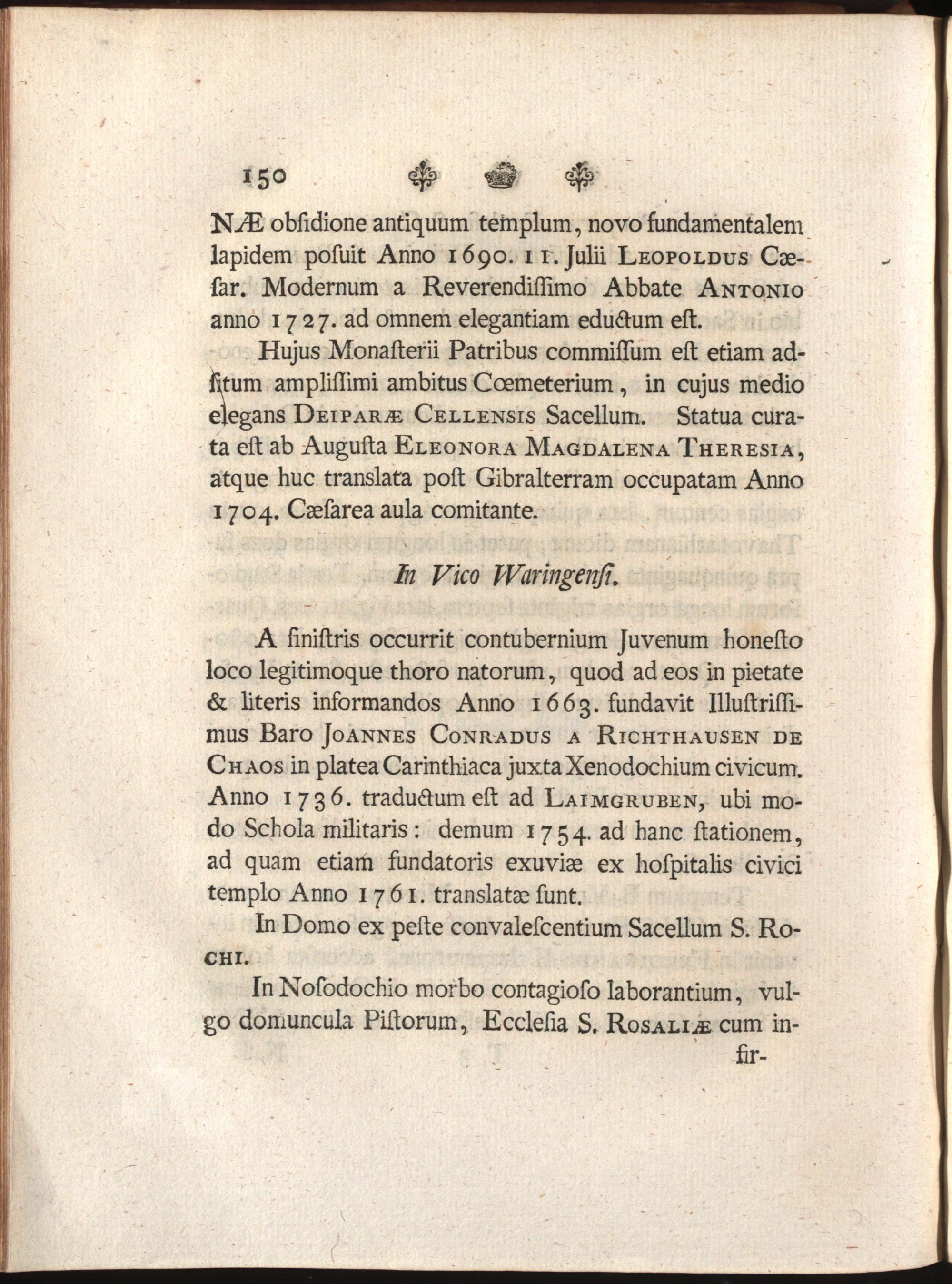 Brevis Notitia Vrbis Veteris Vindobonae : Ex Variis Docvmentis Collecta ; Josepho II Romanorum Regi Semper Augusto Ab Austriaca Jesu Societate In Aeternae Observantiae Monumentum Oblata / [Leopold Fischer]