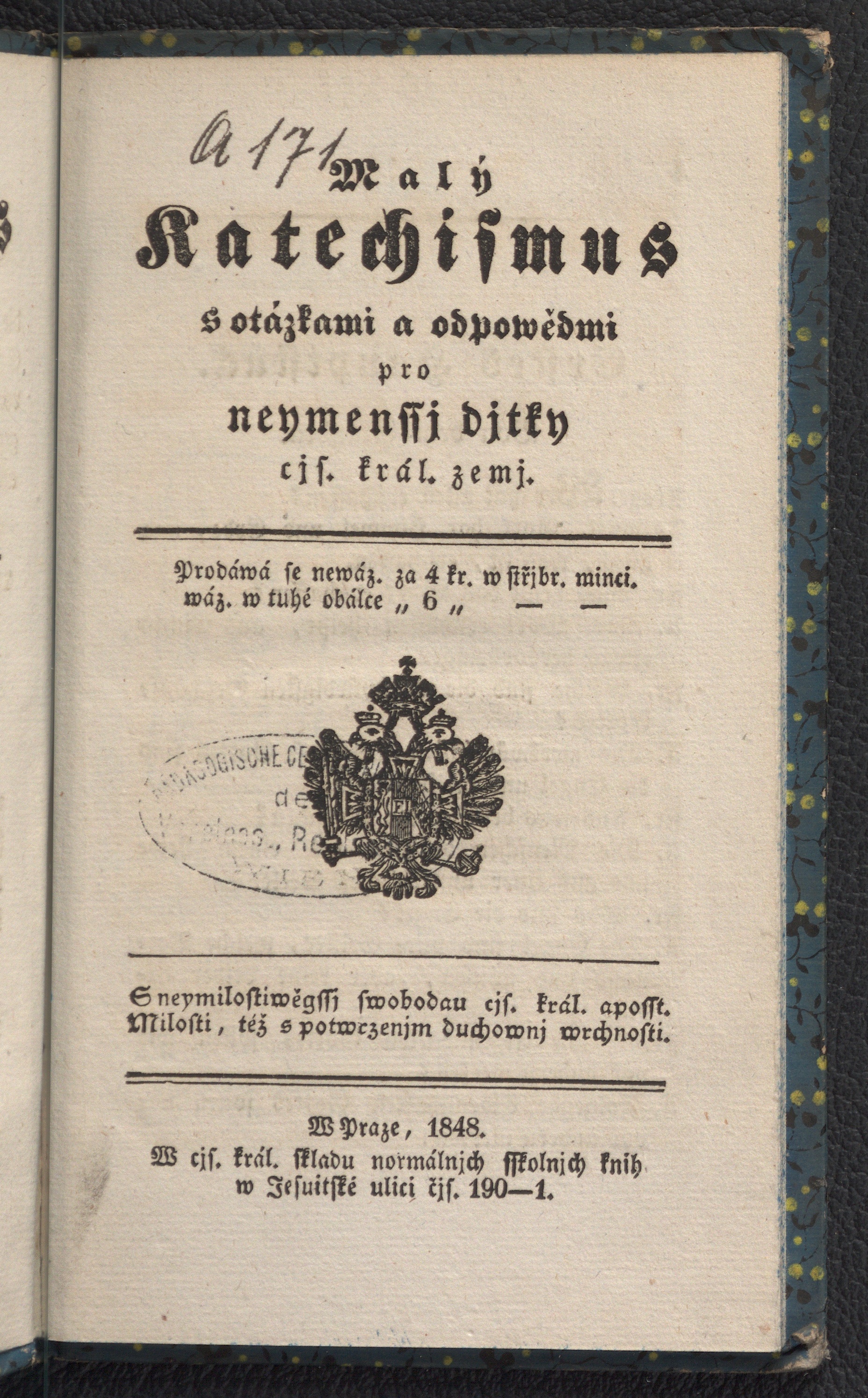 Malý Katechismus s otázkami a odpowědmi pro neymenssj djtky cjs. král. zemj