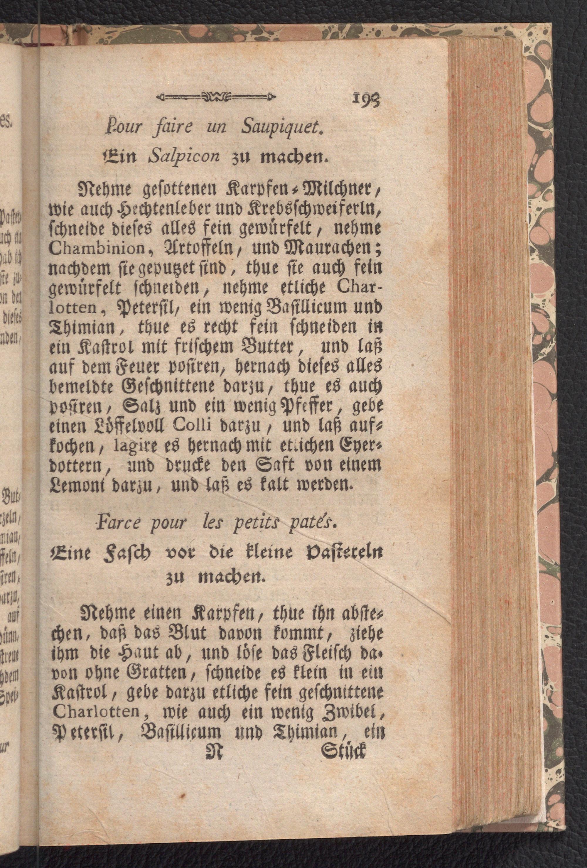 Allerneuestes Kochbuch, welches lehret, wie man auf die genaueste, delikateste und gesparsamste Art arbeiten, die Speisen machen und heutiges Tags serviren soll : Nicht minder, wie die sämmtlichen Speisen in französicher und deutscher Sprache zu benennen, auch wie die Küchenzettel durch die beygesetzten 4 Jahrszeiten für 8 bis 60 und mehrere Personen herauszunehmen sind ... / Herausgegeben von Mr. Jean Neubauer, Mundkoch