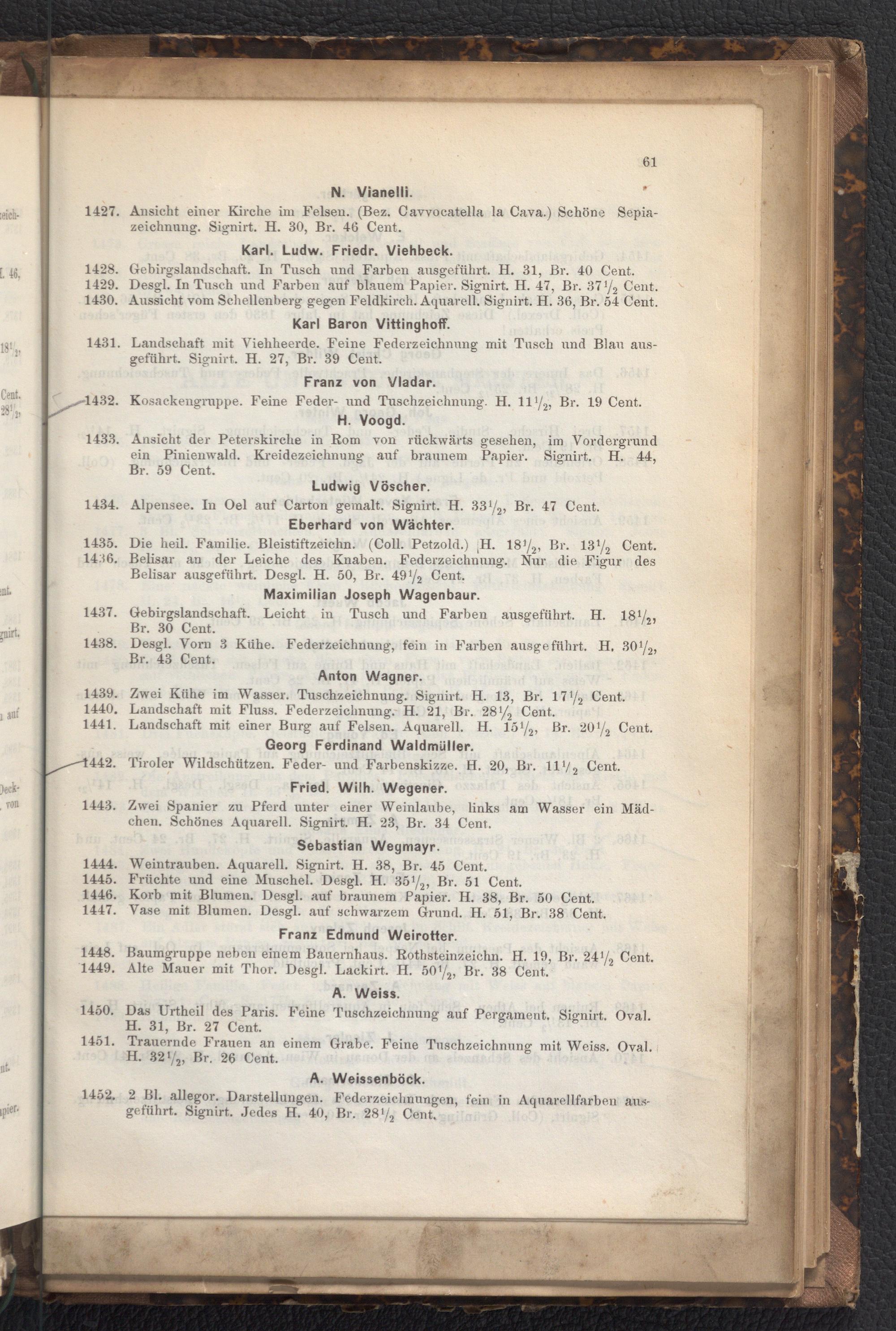 Verzeichniss der vorzüglichen Sammlung von Original-Handzeichnungen und Aquarellen berühmter Meister aller Zeiten und Schulen eines Wiener Kunstfreundes : welche dem 16. November 1871 und die folgenden Tage von 2 - 6 Uhr Nachmittags im Hôtel zur Goldenen Ente, Schulerstraße, Ecke der Riemerstraße unter der Leitung von M. Kuppitsch Wwe. (R. Schmidt) durch den vereideten Schätzmeister Herrn Aug. Prandel öffentlich gegen gleich baare Bezahlung versteigert wird ; Wiener Kunst-Auction den 16. November 1871