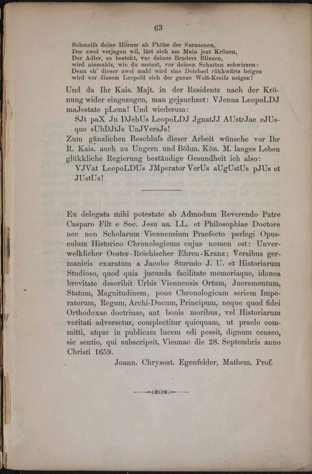 Unverwelklicher Oester-Reichischer Ehrenkranz gewunden der Röm. Kais. auch zu Ungarn und Böhmen königl. Majt. Haupt- und Residenz-Stadt Wien in Österreich an der Donau : in eigendlichster Historisch-Poetischer Beschreibung: gebunden mit aller Röm. Kaiser und Erz-Herzogen, aus diesem Haus Oester-Reich Gebuhrten, Regierungen, Leben und Tode ; darzu gefunden wie viel tapfere Helden durch den blutigen Teutschen Krieg rühmlich gekrieget und glükklich gesieget haben: und was mehr zu solchem von Nöhten gewesen ; dieses alles hat nach der Zeit Verlauf ordentlich verfasset und mit nothwendigen Anmerkungen erkläret / Jacob Sturm