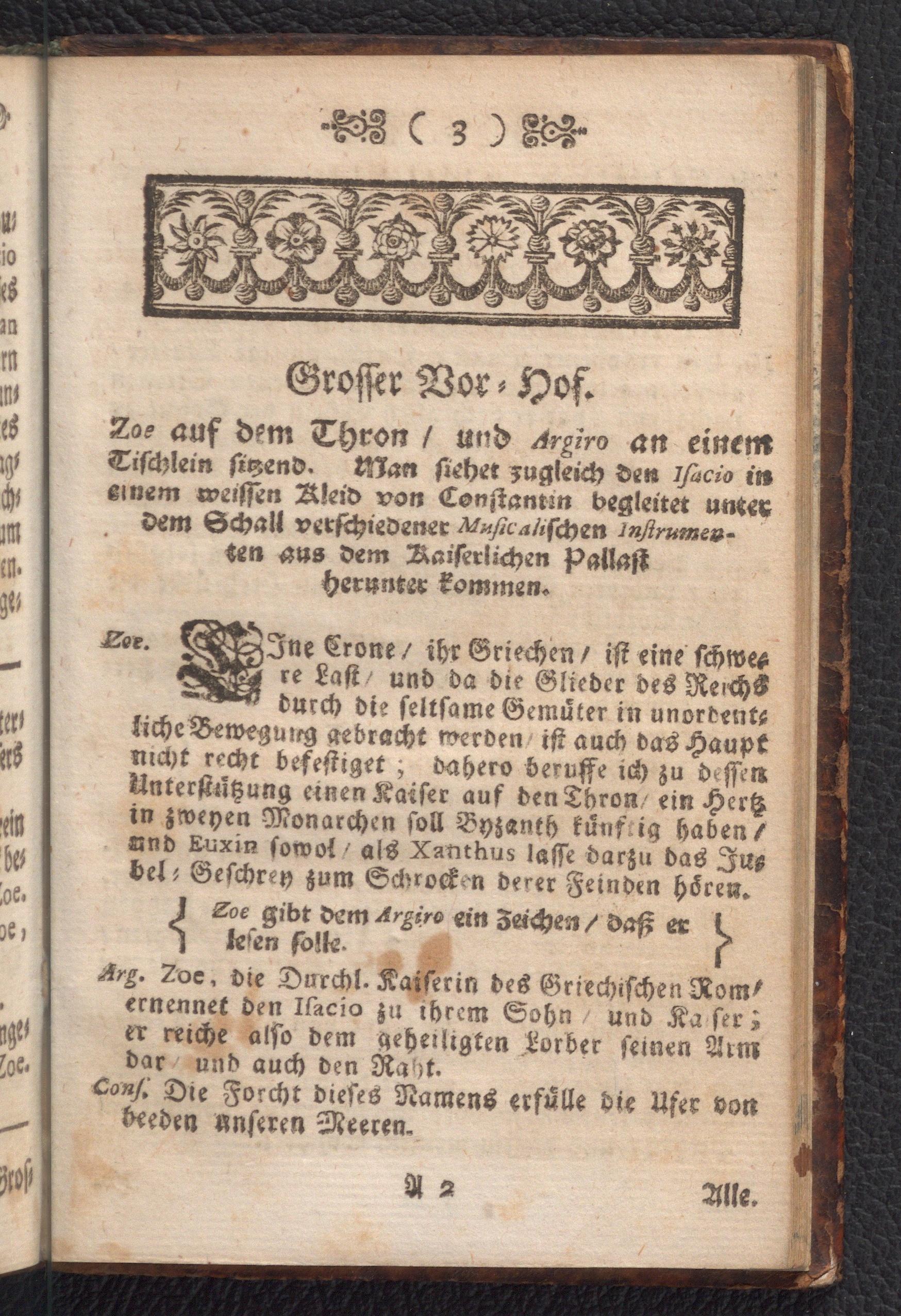 Zoe : Musicalisch-Italiänisches Zwischen-Spiel, Vorgestellet Auf dem Von Ihro Röm. Kaiserl. und Königl. Cathol. Majestät Privilegirten Theatro In Wien
