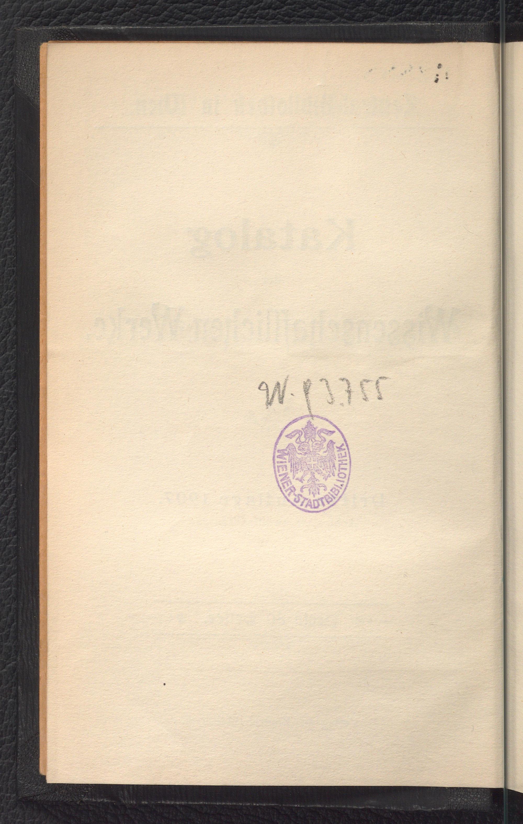 Katalog der wissenschaftlichen Werke / Zentral-Bibliothek in Wien