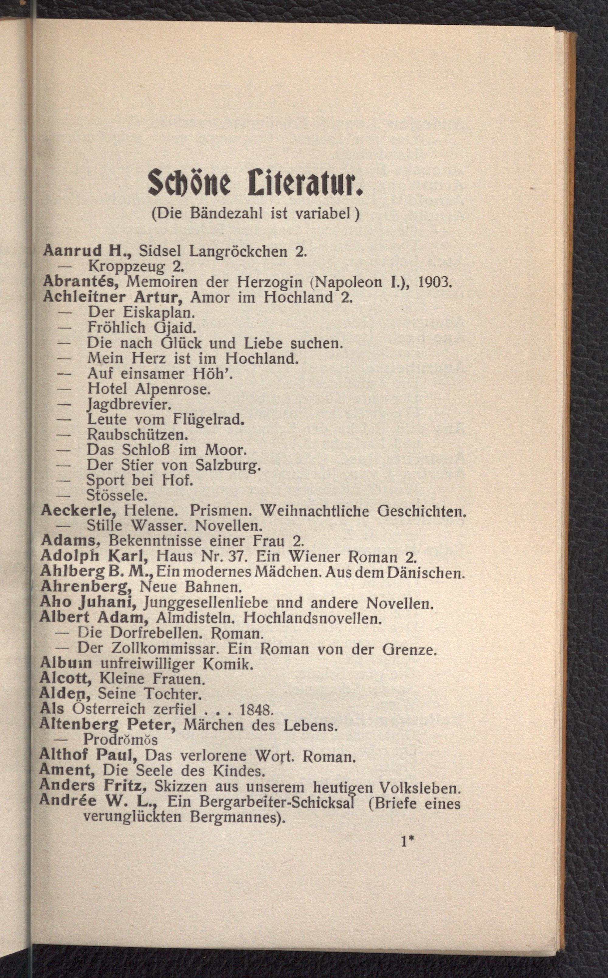 Nachtrag für schöne Literatur und Jugendschriften 1908 / Zentralbibliothek in Wien