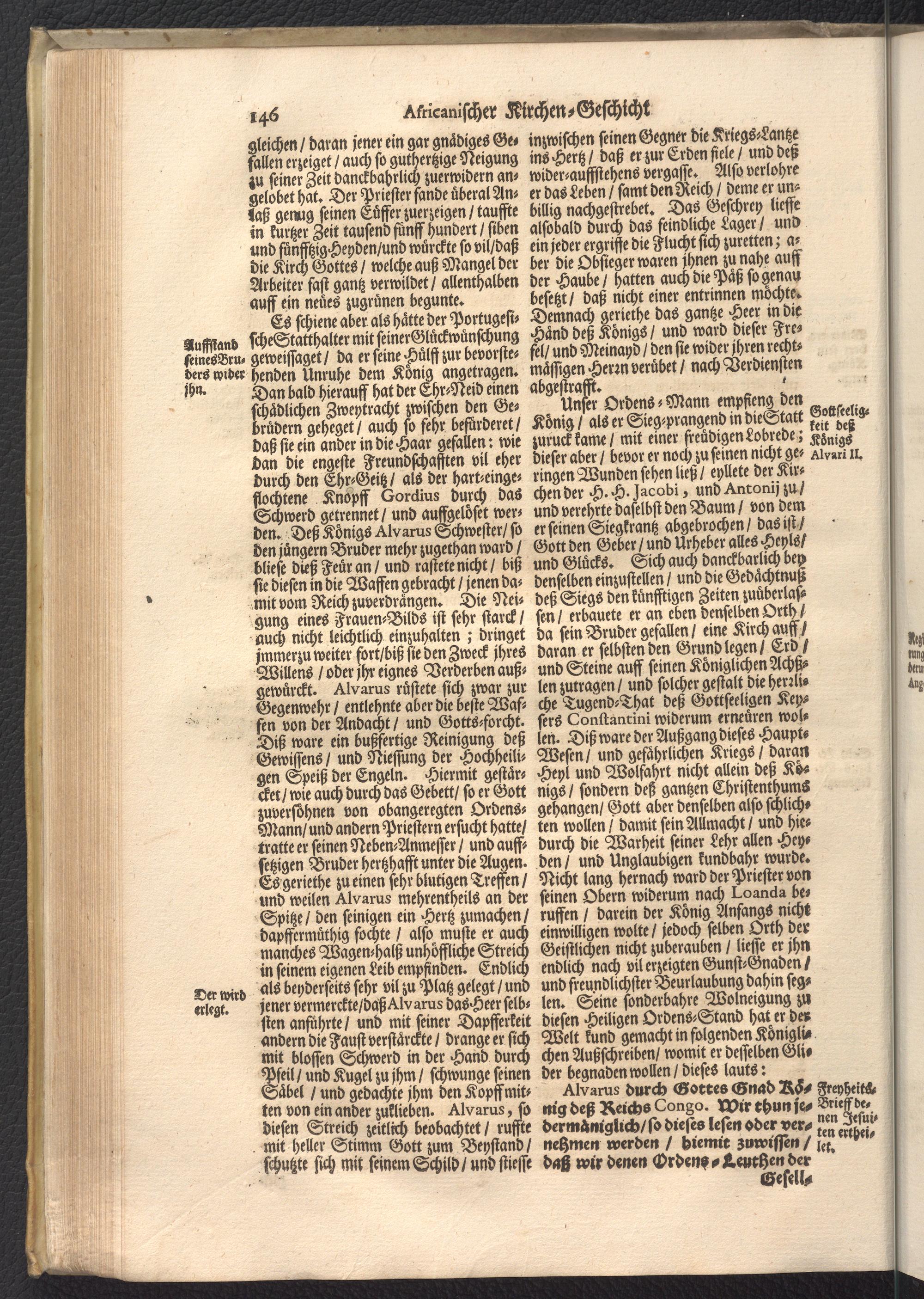 2 (1684) In sich begreiffend Die Africanische Länder/ Abassia, Guinea, Angola, Congo, Monomotapa, Marocco, und Fessa: Demnach die Americanische/ Peru, Paraquaria, Brasilia, Florida, Canada, Mexico, und Maragnan / / ... übersetzet/ und vermehret/ durch R. P. Mathiam Soutermans ... / Cornelius Hazart
