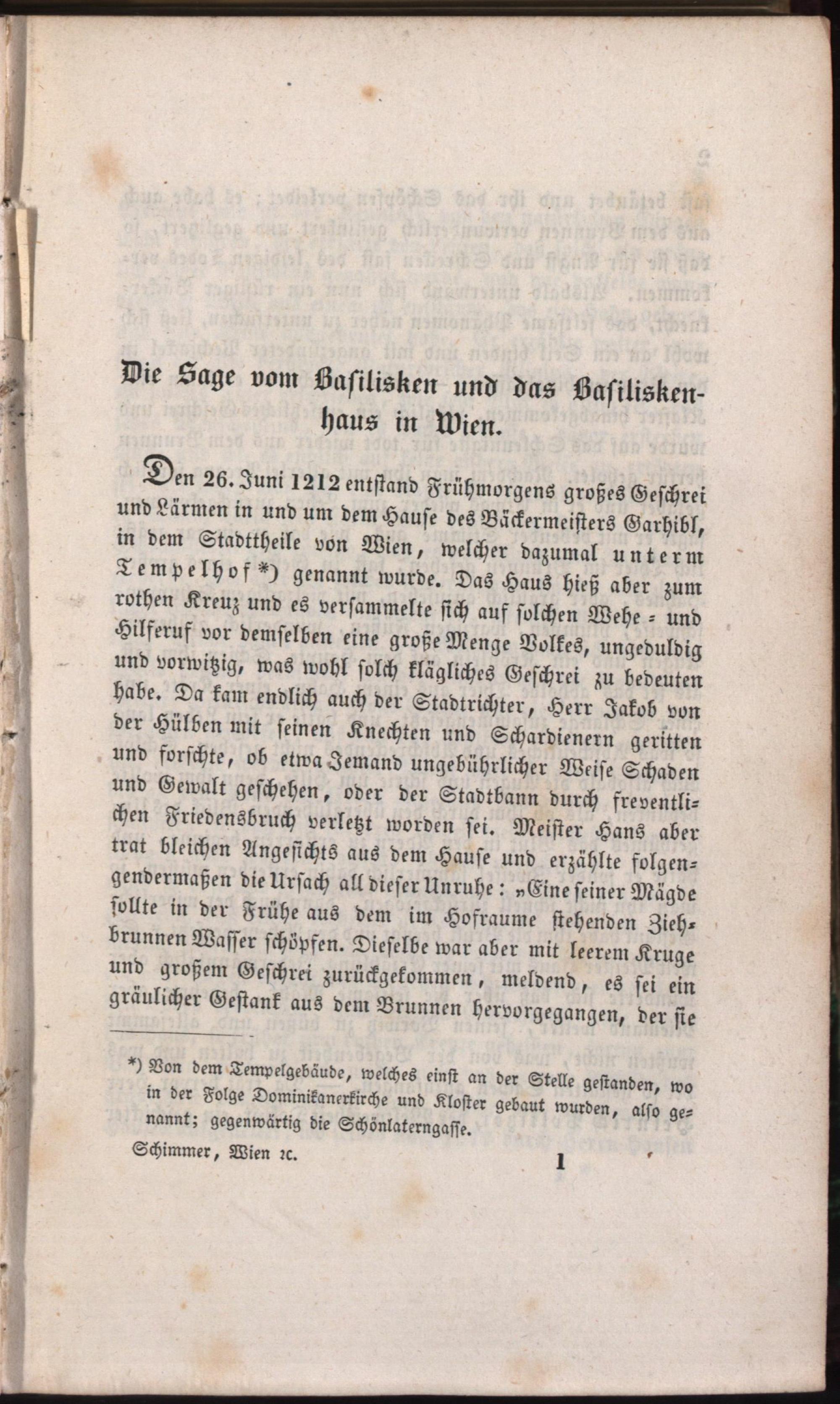 1 (1847) Wien seit sechs Jahrhunderten : Eine chronologische Reihenfolge von Thatsachen, Begebenheiten und Vorfällen in Wien von 1200 bis auf die neuere Zeit ; mit einer quellengetreuen Darstellung des öffentlichen und geselligen Lebens in dem alten Wien und Nachrichten über die aufgehobenen Klöster und verschwundenen Gebäude in der Stadt und den Vorstädten ; Nach seltenen und bewährten Quellen / bearbeitet von Karl August Schimmer