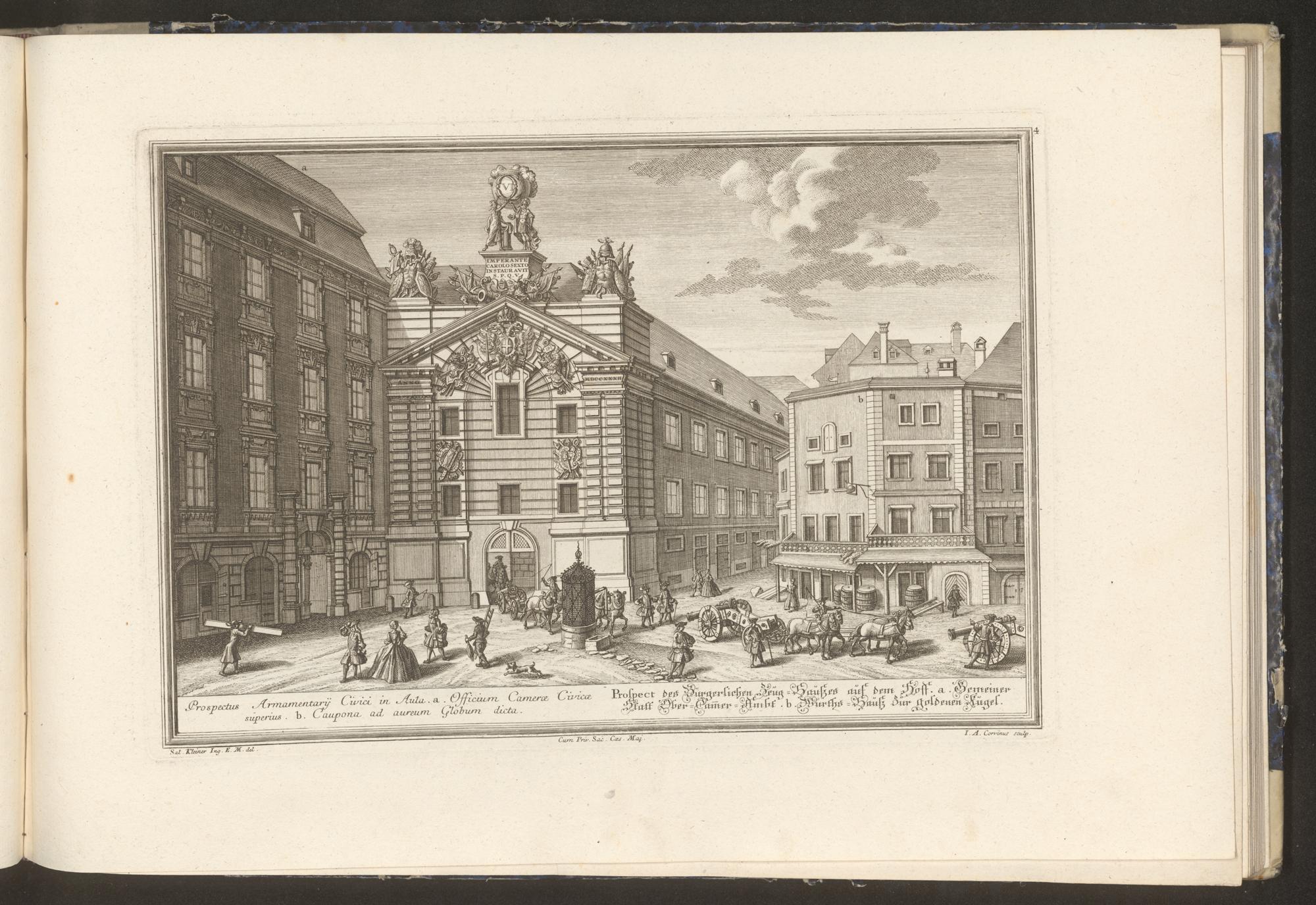 4 (1737) Vera Et Accurata Delineatio Omnium Templorum et Coenobiorum Quae tam in Caesarea Urbe ac Sede Vienna Austriae, quam in circumjacentibus Suburbiis ejus reperiuntur : Ubi non minus aliquot Principum ac Comitum, ut et alia splendida aedificia ad Oblectationem Spectatorum indigitata / ad vivum ibi designata per Salomon Kleiner, Architecturæ Culturem, Excusa et edita, à Iohanne Andrea Pfeffel, S. Cæs Maj. Chalcographo Aulico