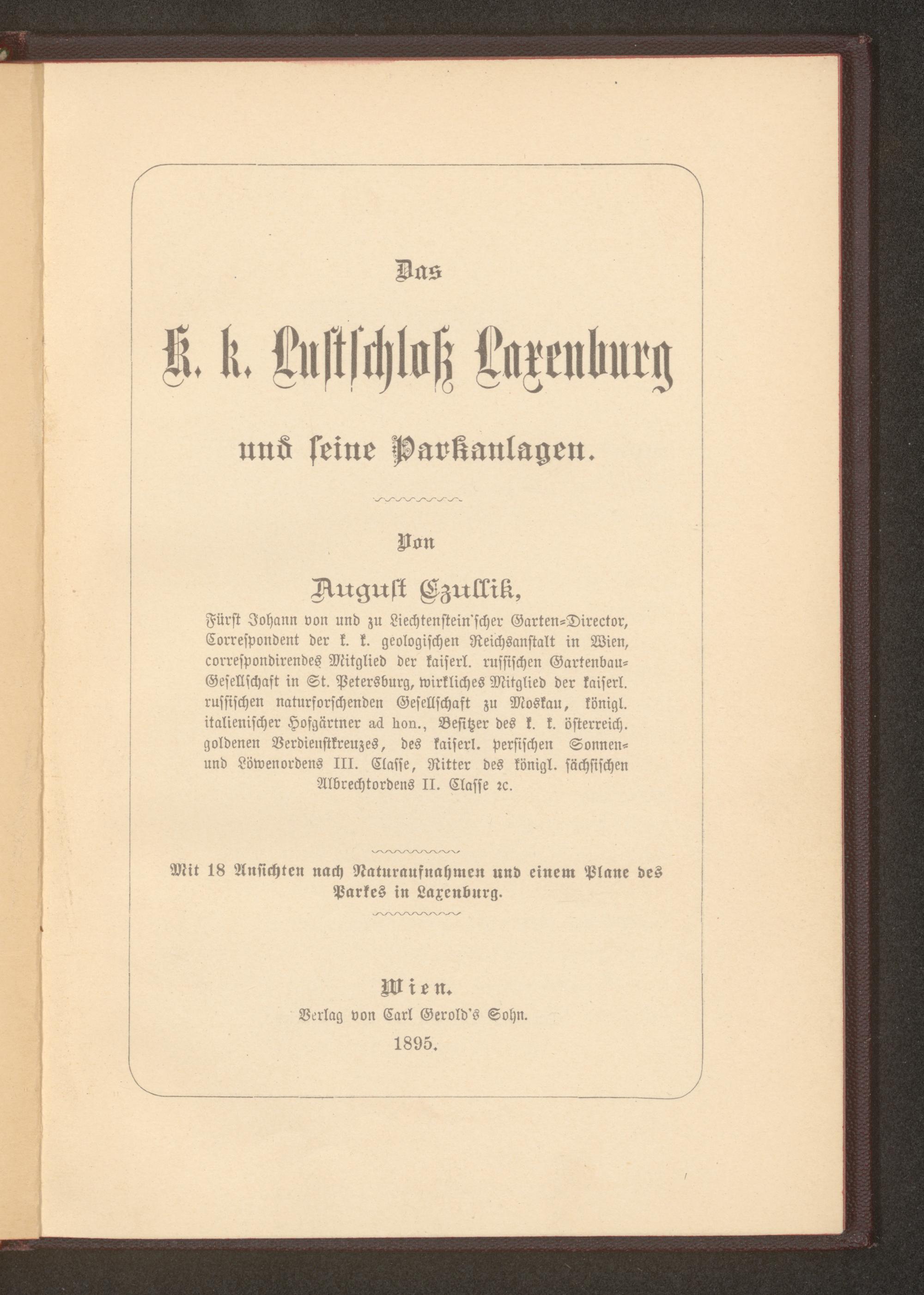 Das k. k. Lustschloß Laxenburg und seine Parkanlagen / von August Czullik