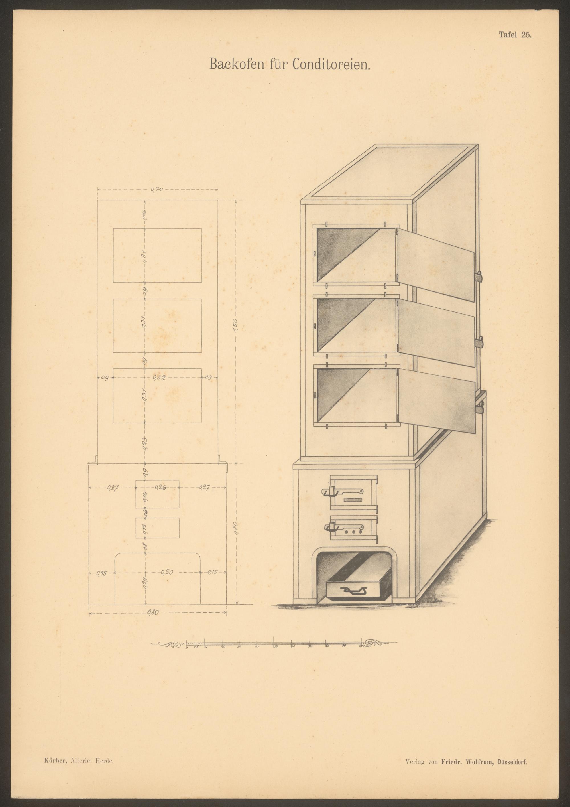 Allerlei Herde : Original-Entwürfe von Tischherden, Aufsatzherden, Herden für Gasthäuser, Krankenhäuser etc., Kaffeehausherden, Backöfen für Konditoreien, Windöfen, Grilliermaschinen, Leimwärmeöfen etc. ; mit Mass- und Preisangaben ; 53 Tafeln mit kurzem beschreibenden Text / hrsg. von Leonhard Körber