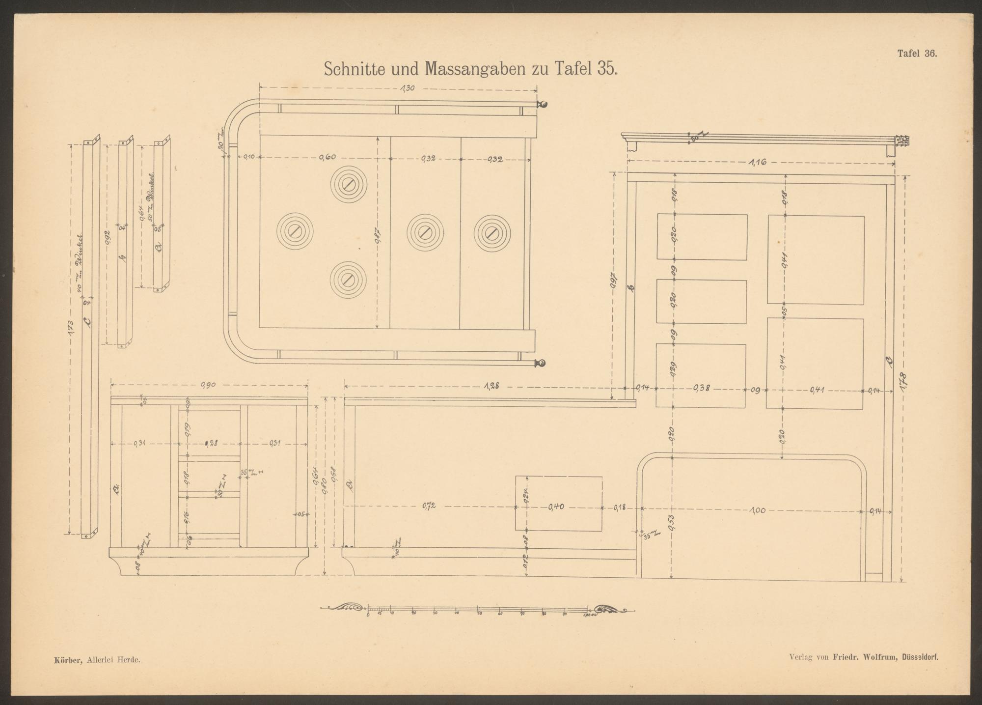 Allerlei Herde : Original-Entwürfe von Tischherden, Aufsatzherden, Herden für Gasthäuser, Krankenhäuser etc., Kaffeehausherden, Backöfen für Konditoreien, Windöfen, Grilliermaschinen, Leimwärmeöfen etc. ; mit Mass- und Preisangaben ; 53 Tafeln mit kurzem beschreibenden Text / hrsg. von Leonhard Körber