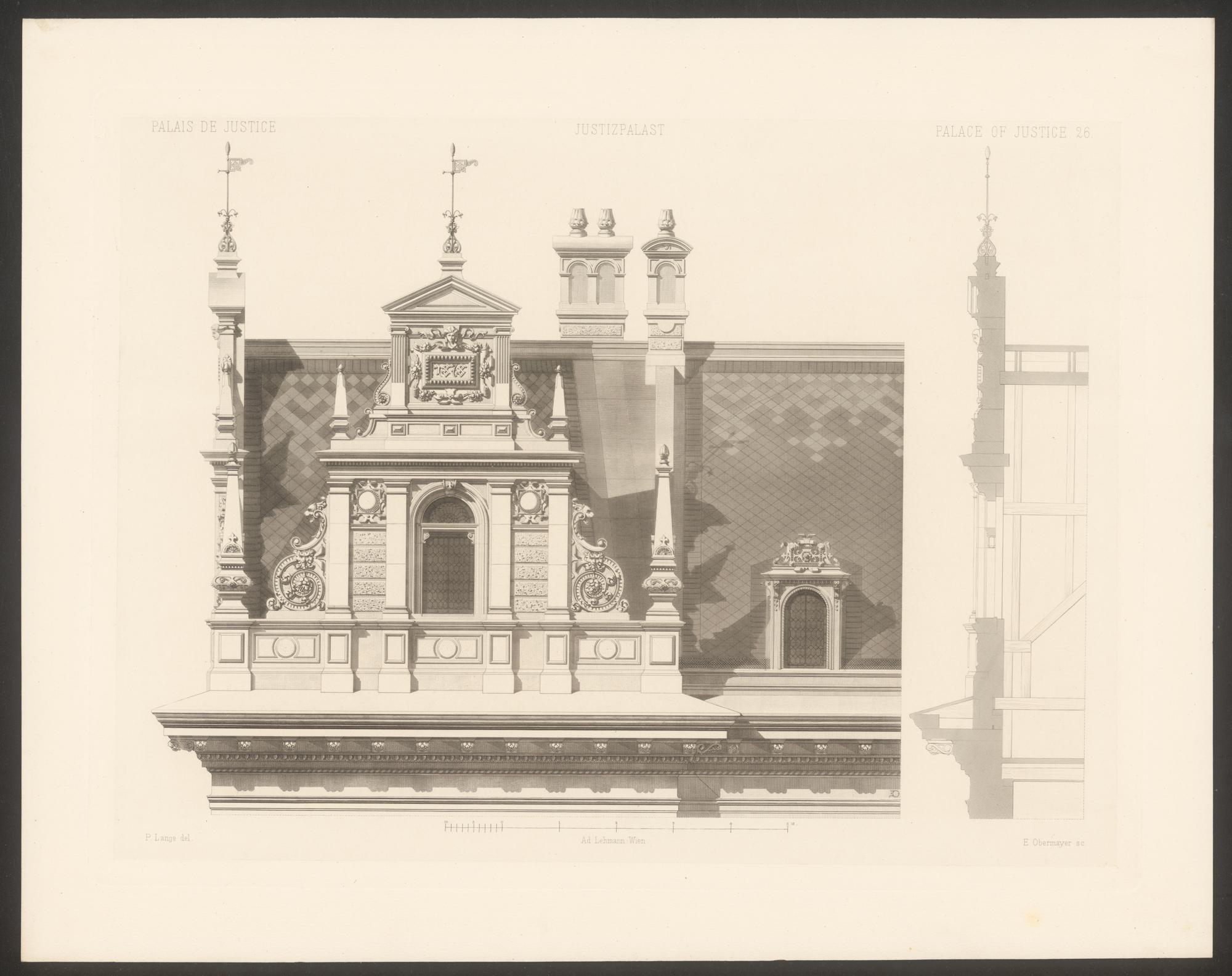 Der Justiz-Palast in Wien : [40 Kupfertafeln] / von A. von Wielemans. Gezeichnet von Paul Lange etc., gestochen von Ed. Obermayer etc. Text von Hans Auer