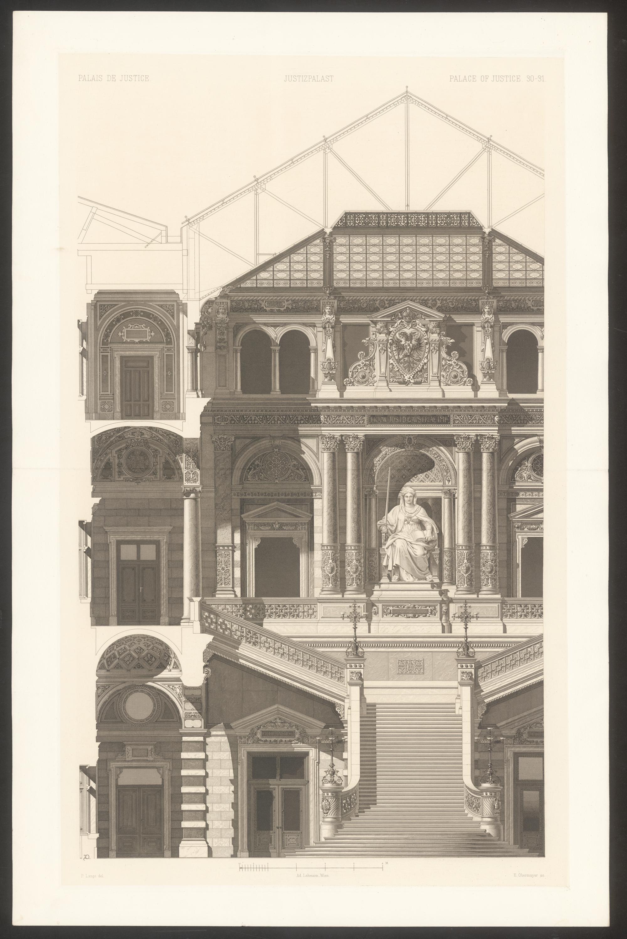 Der Justiz-Palast in Wien : [40 Kupfertafeln] / von A. von Wielemans. Gezeichnet von Paul Lange etc., gestochen von Ed. Obermayer etc. Text von Hans Auer