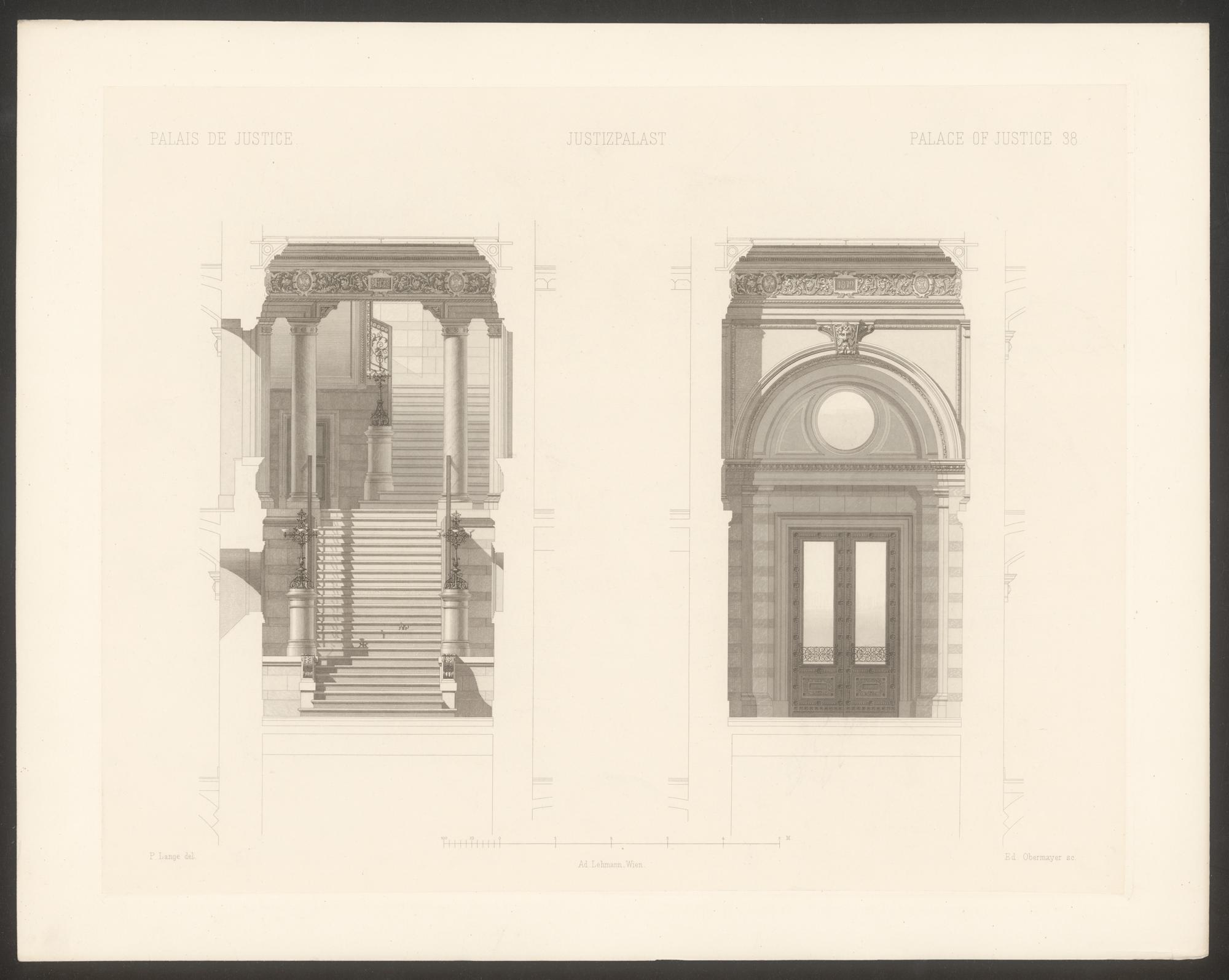 Der Justiz-Palast in Wien : [40 Kupfertafeln] / von A. von Wielemans. Gezeichnet von Paul Lange etc., gestochen von Ed. Obermayer etc. Text von Hans Auer