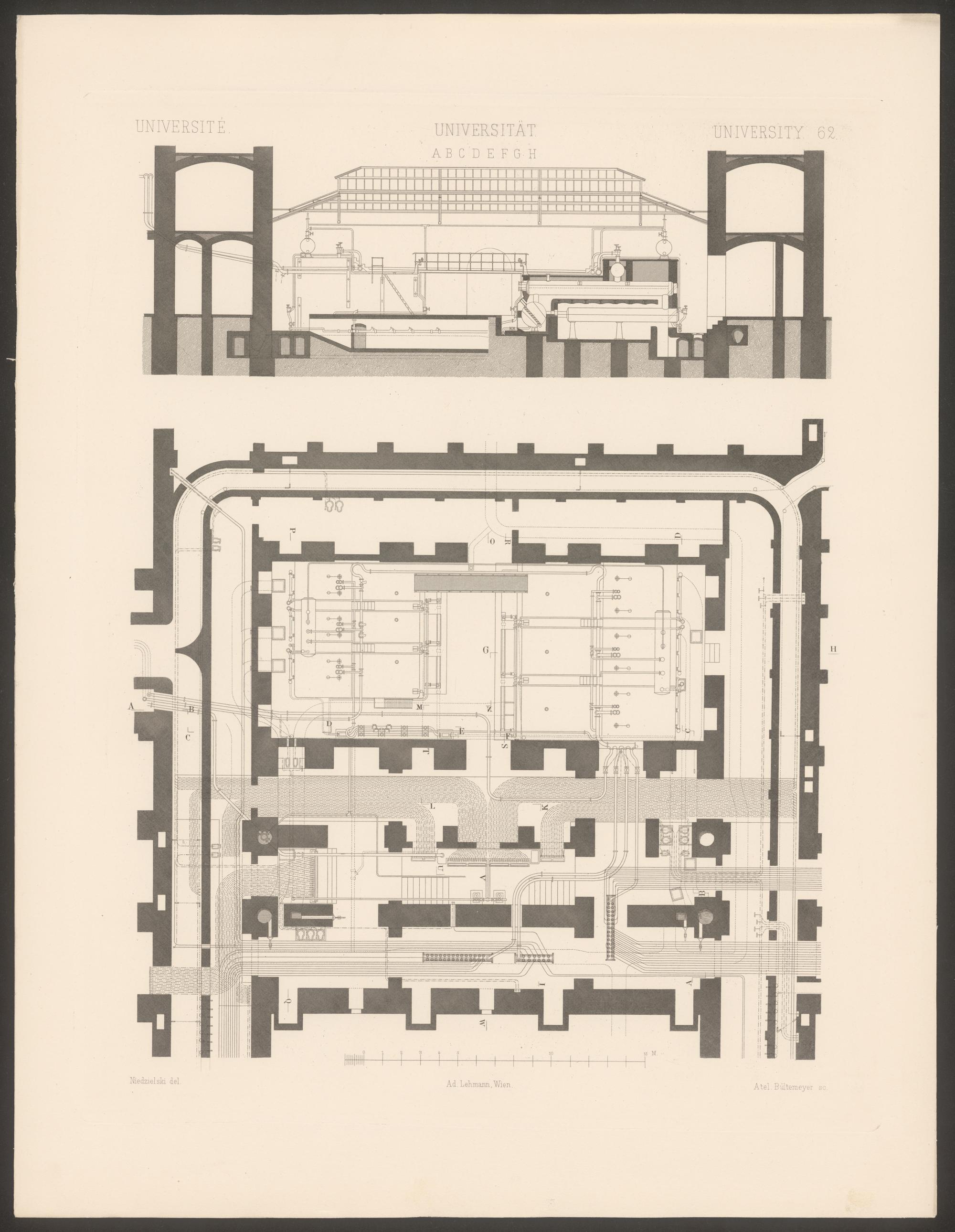 Die K. K. Universität in Wien / von Heinrich von Ferstel. Gezeichnet von J. Niedzielski. Gestochen von Ed. Obermayer etc. Text von Max von Ferstel