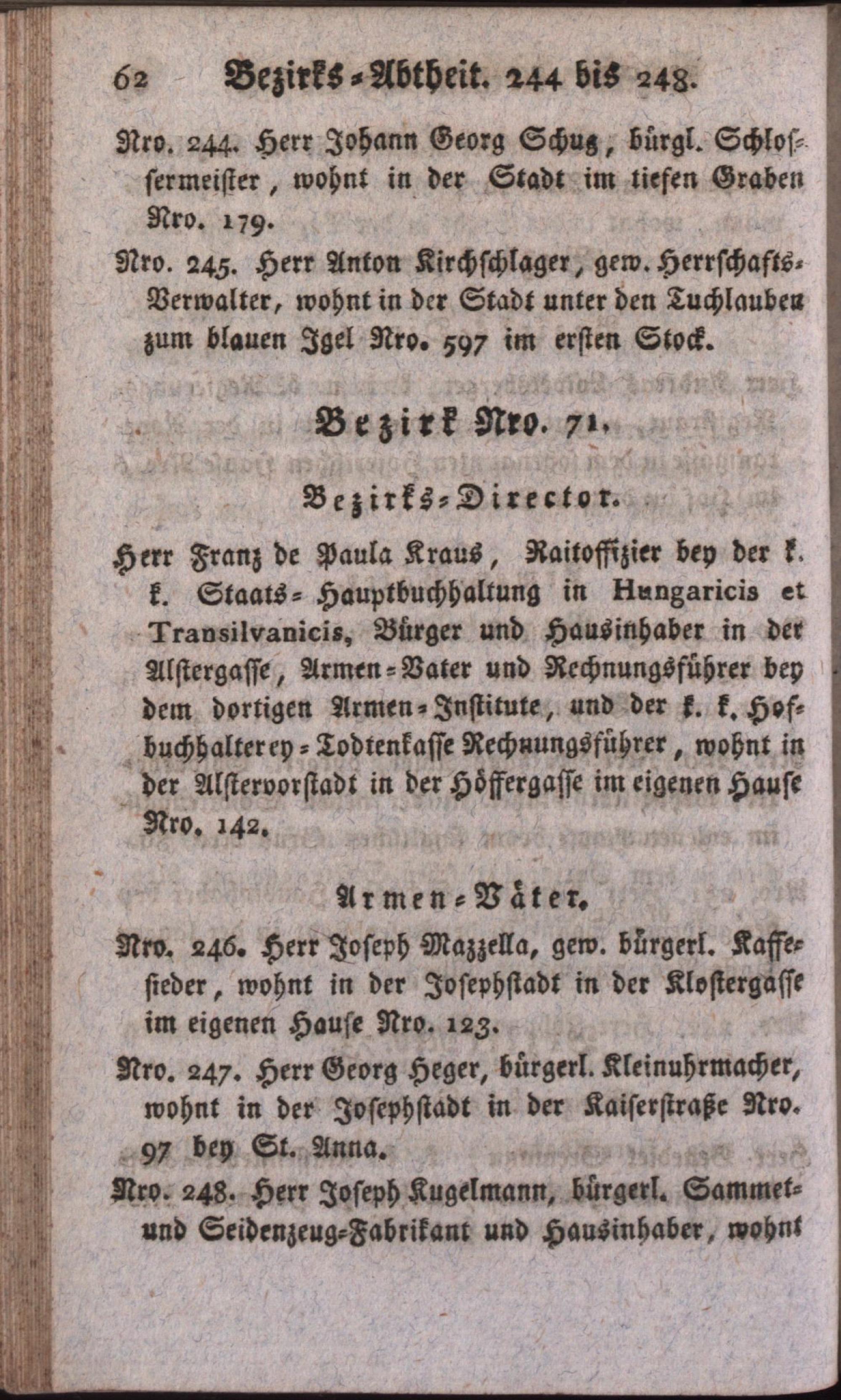 Schematismus zum Behufe der von Seiner k. k. Apostolischen Majestät angeordneten allgemeinen Untersuchung aller Armen in dem ganzen Umfange des Wiener-Armen-Institutes / hrsg. auf Veranlassung der k. k. Hofcommission zu Regulirung der Wohlthätigkeits-Anstalten