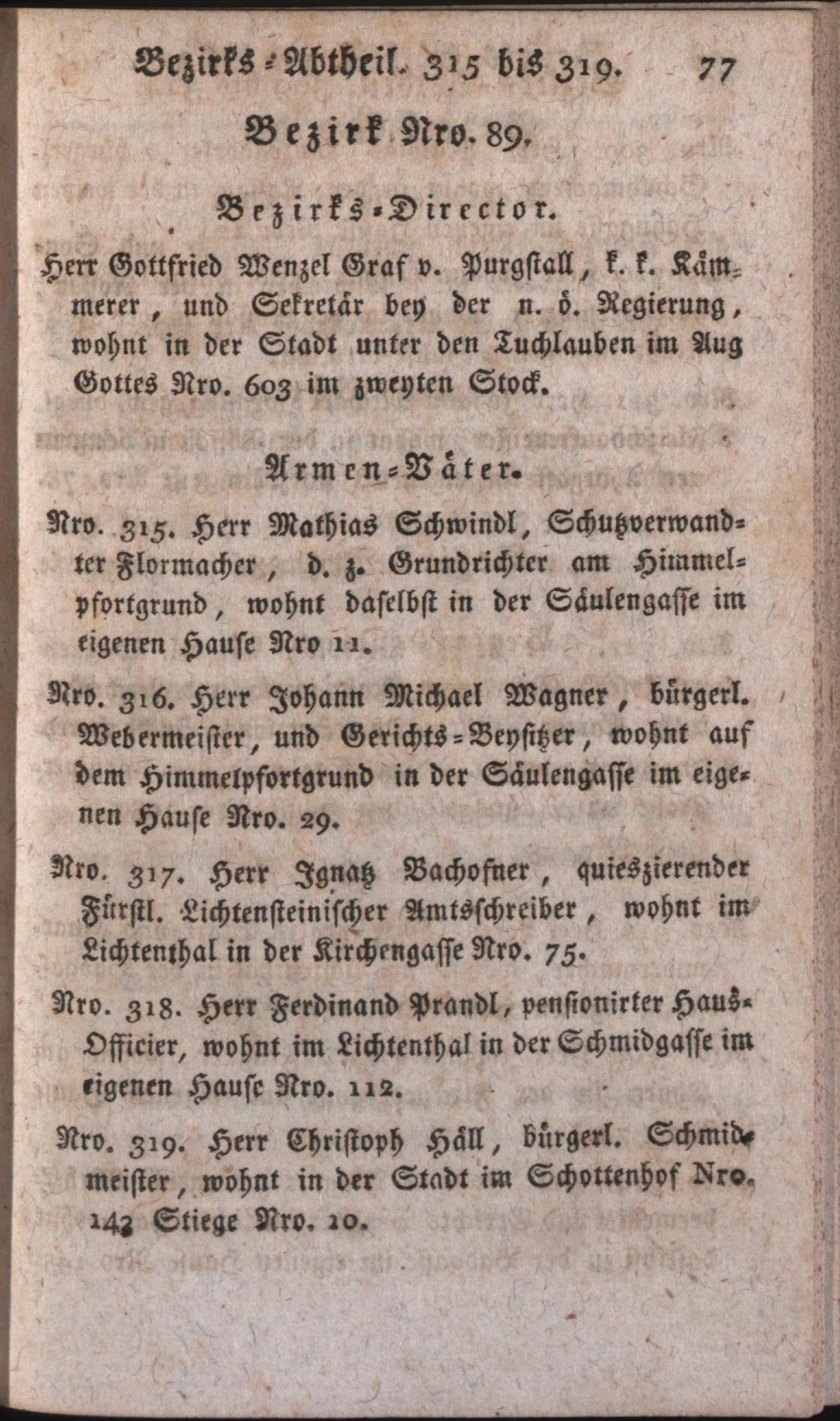 Schematismus zum Behufe der von Seiner k. k. Apostolischen Majestät angeordneten allgemeinen Untersuchung aller Armen in dem ganzen Umfange des Wiener-Armen-Institutes / hrsg. auf Veranlassung der k. k. Hofcommission zu Regulirung der Wohlthätigkeits-Anstalten