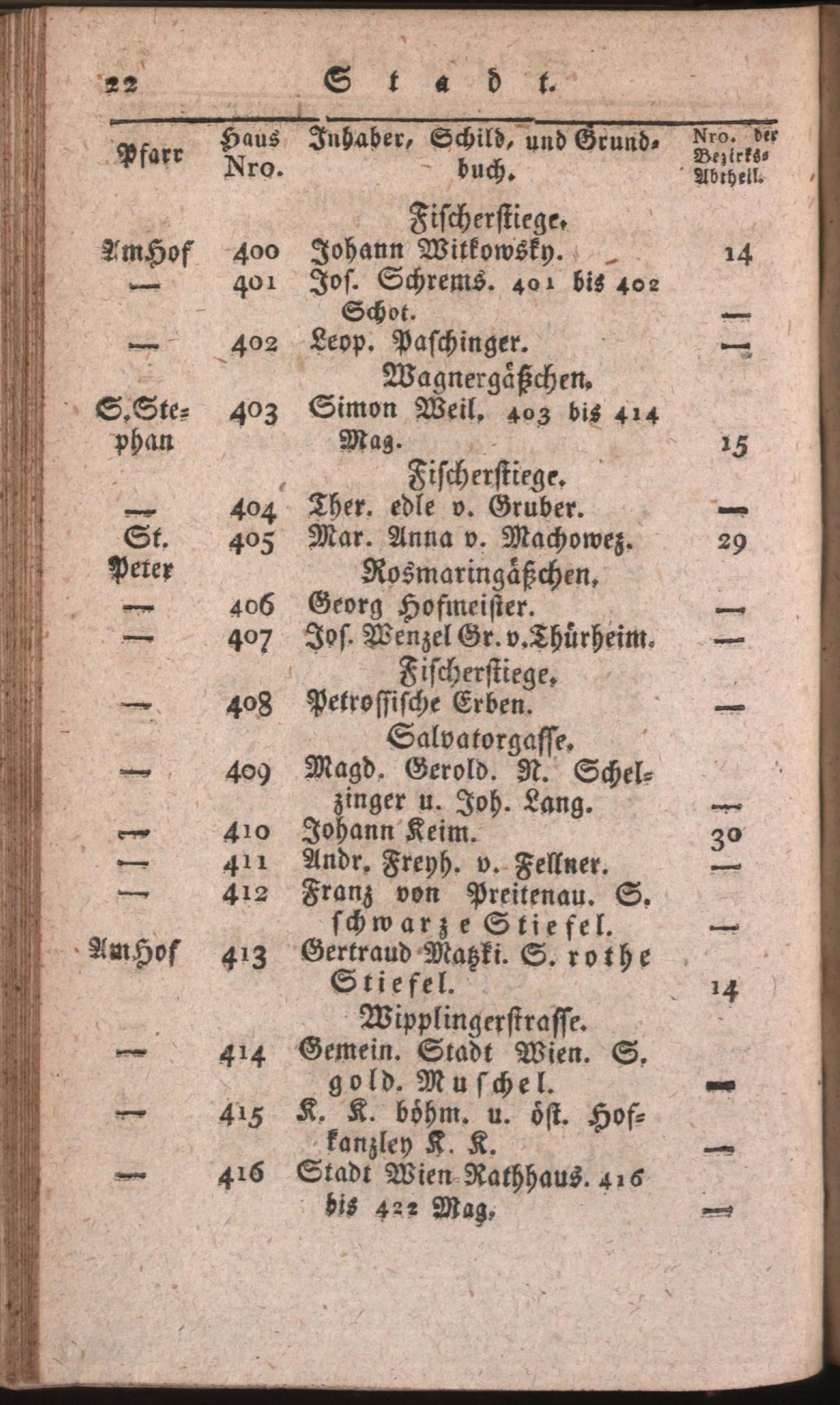 Schematismus zum Behufe der von Seiner k. k. Apostolischen Majestät angeordneten allgemeinen Untersuchung aller Armen in dem ganzen Umfange des Wiener-Armen-Institutes / hrsg. auf Veranlassung der k. k. Hofcommission zu Regulirung der Wohlthätigkeits-Anstalten
