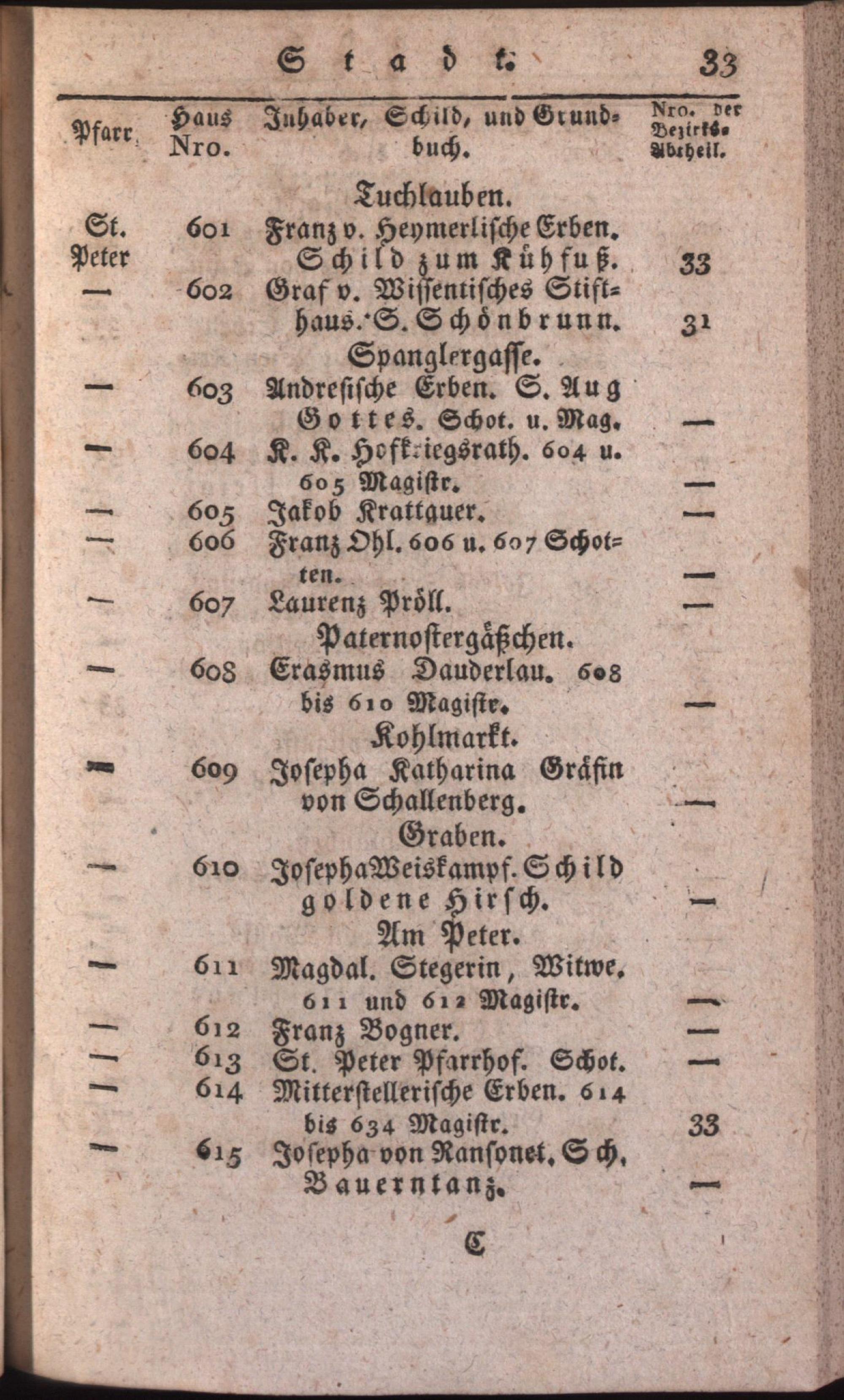 Schematismus zum Behufe der von Seiner k. k. Apostolischen Majestät angeordneten allgemeinen Untersuchung aller Armen in dem ganzen Umfange des Wiener-Armen-Institutes / hrsg. auf Veranlassung der k. k. Hofcommission zu Regulirung der Wohlthätigkeits-Anstalten