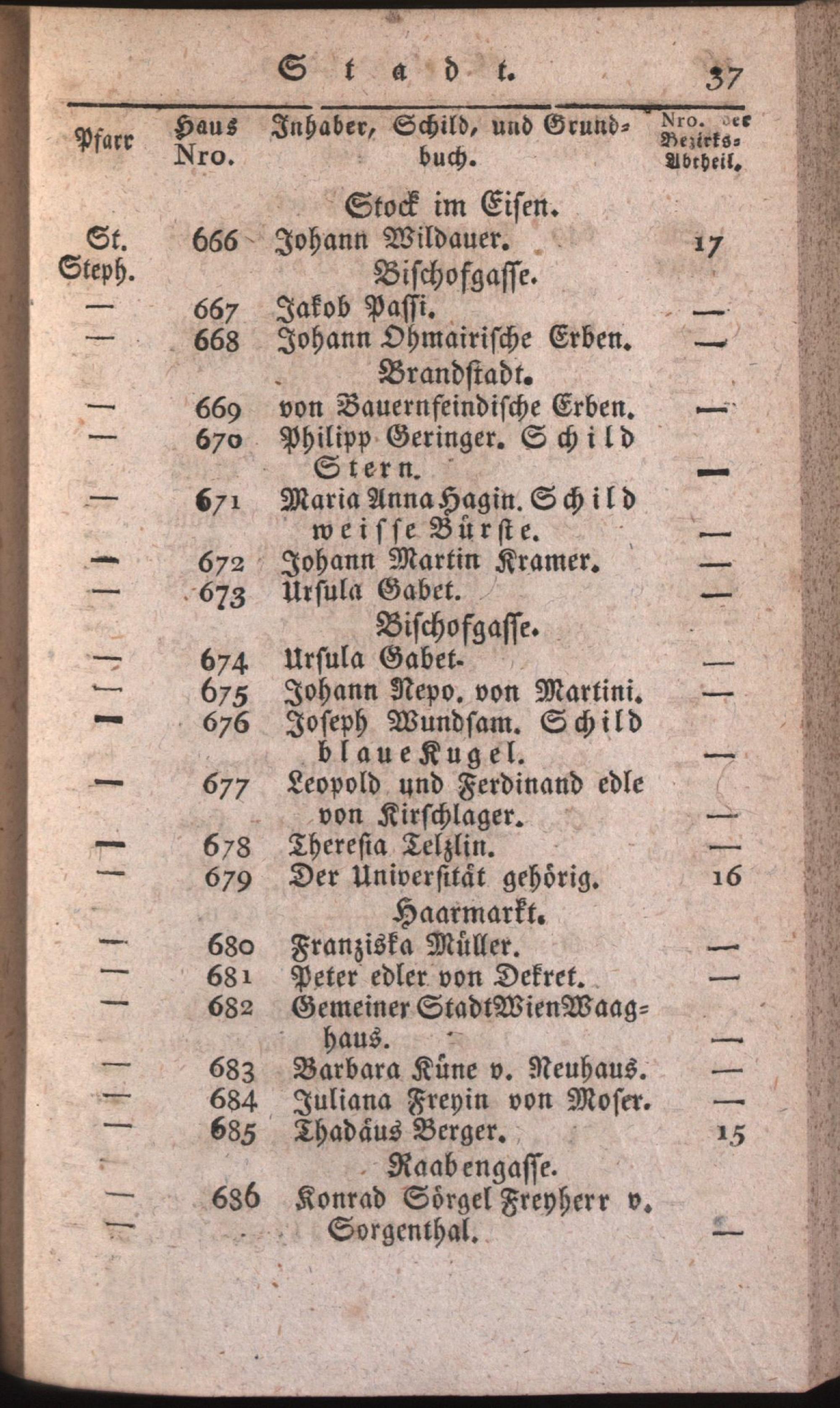 Schematismus zum Behufe der von Seiner k. k. Apostolischen Majestät angeordneten allgemeinen Untersuchung aller Armen in dem ganzen Umfange des Wiener-Armen-Institutes / hrsg. auf Veranlassung der k. k. Hofcommission zu Regulirung der Wohlthätigkeits-Anstalten
