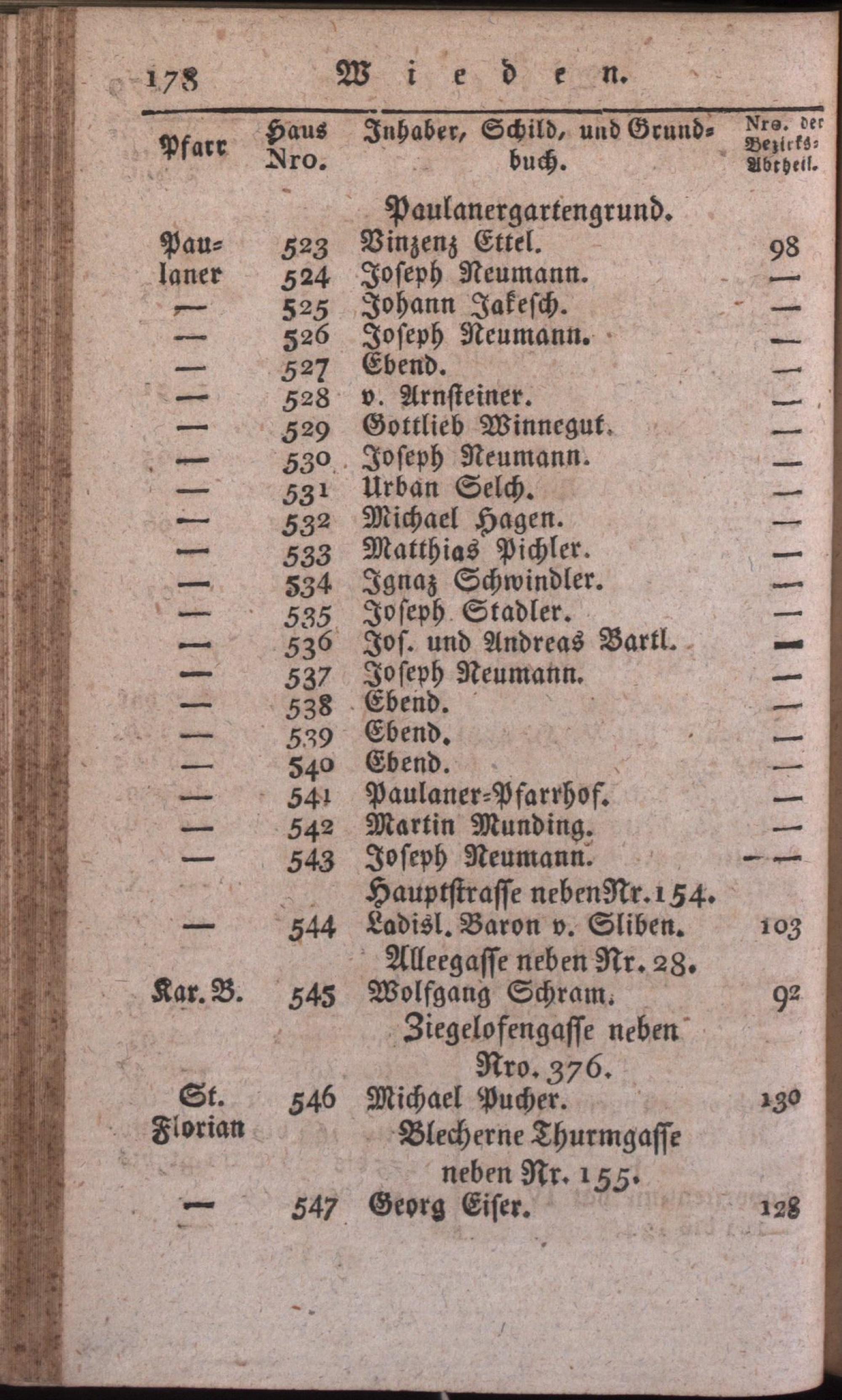 Schematismus zum Behufe der von Seiner k. k. Apostolischen Majestät angeordneten allgemeinen Untersuchung aller Armen in dem ganzen Umfange des Wiener-Armen-Institutes / hrsg. auf Veranlassung der k. k. Hofcommission zu Regulirung der Wohlthätigkeits-Anstalten