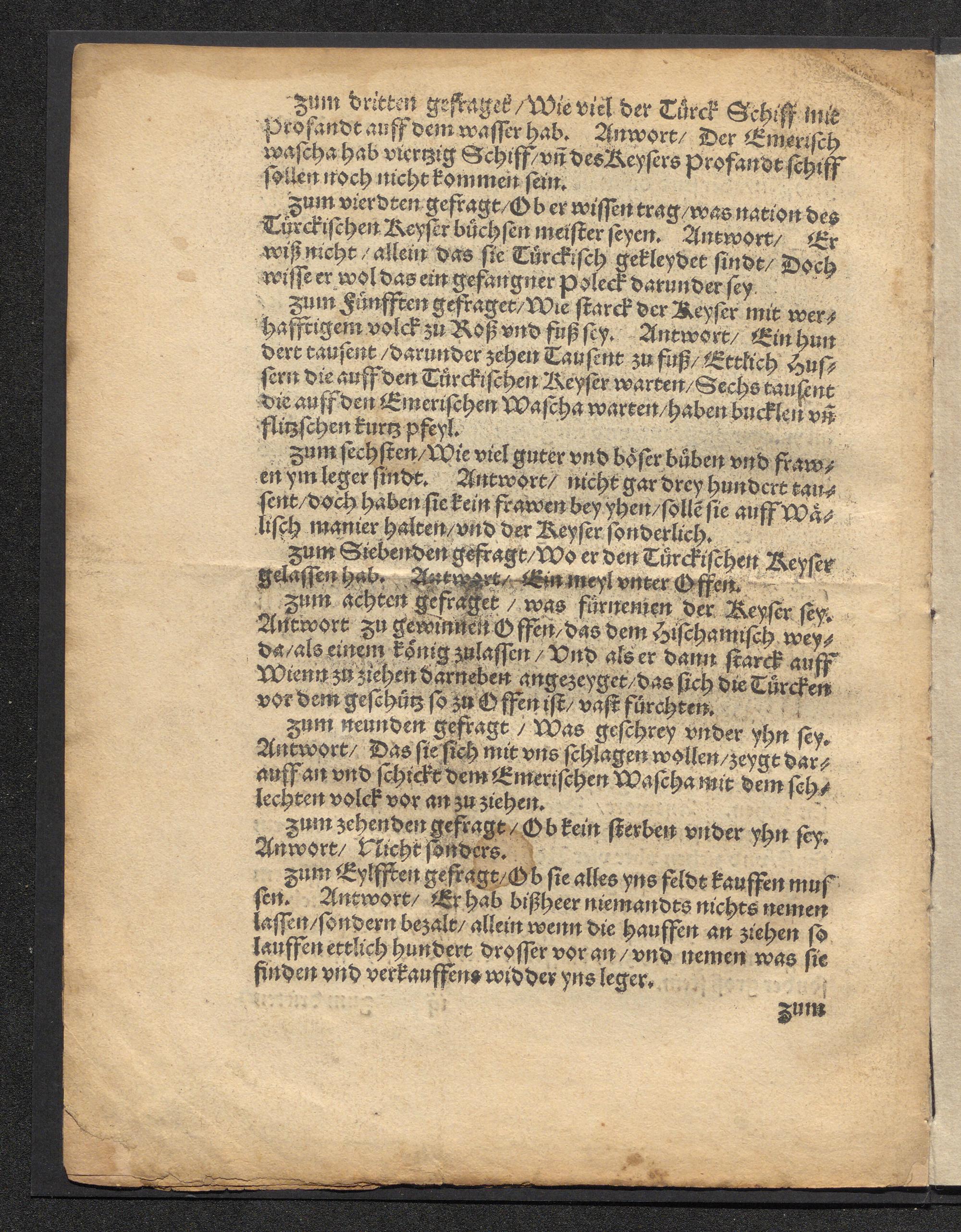 Turcken belegerung der statt Wien : Auch wie ein Türckischer Herr ynn eynem gülden stuck gefangen, Was der gefragt vnd darauff geantwort hab