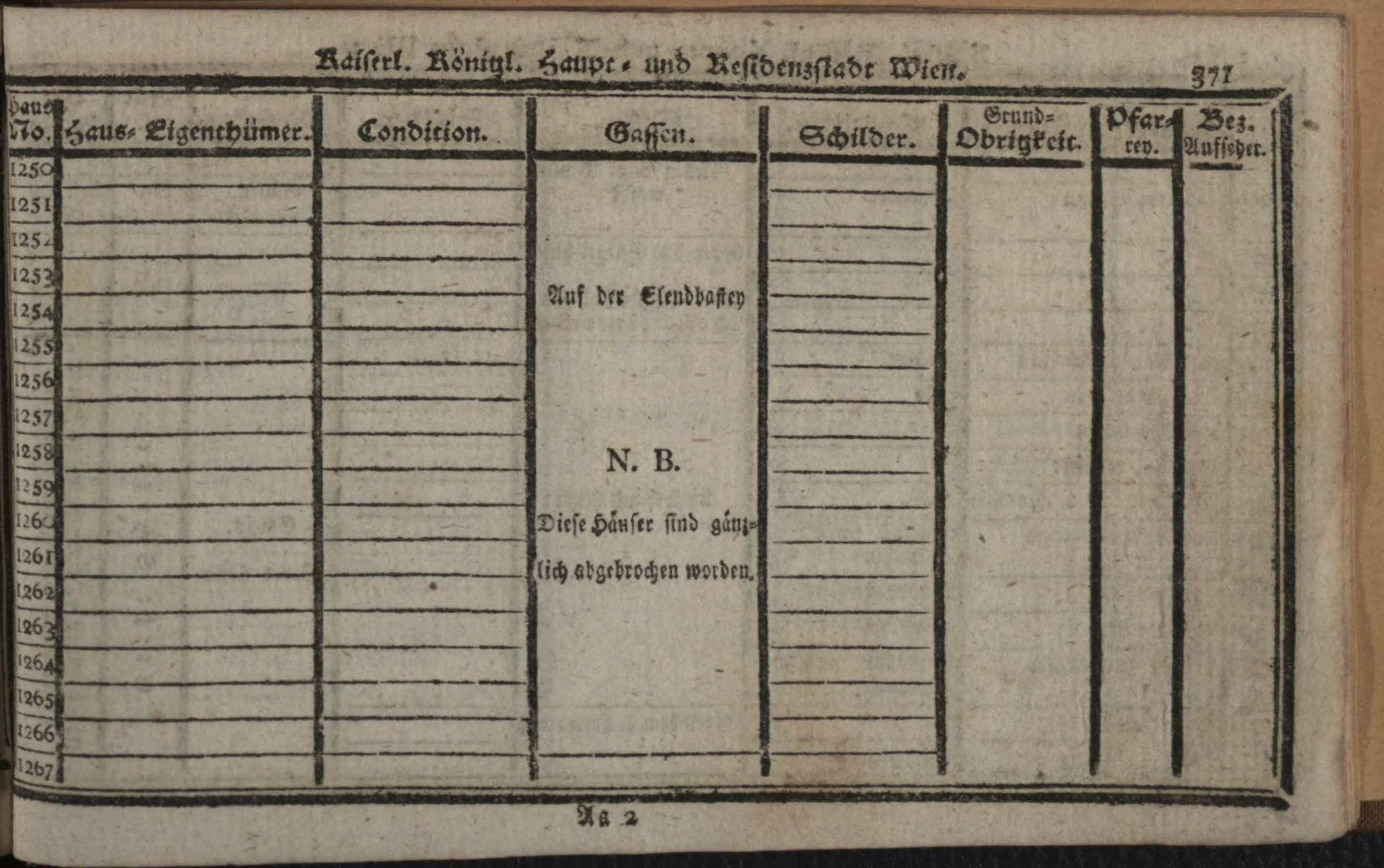 Verzeichniß der in der Kaiserl. Königl. Haupt- und Residenzstadt Wien, sammt dazu gehörigen Vorstädten, und Gründen, befindlichen numerirten Häusern derselben Eigenthümern, und deren Conditionen, Schilderen, Gassen, Grund-Obrigkeiten, Pfarreyen, und derzeit Bezirksaufsehern : auf das genaueste nach denen Grundbüchern entworfen / Von Franz de Ponty