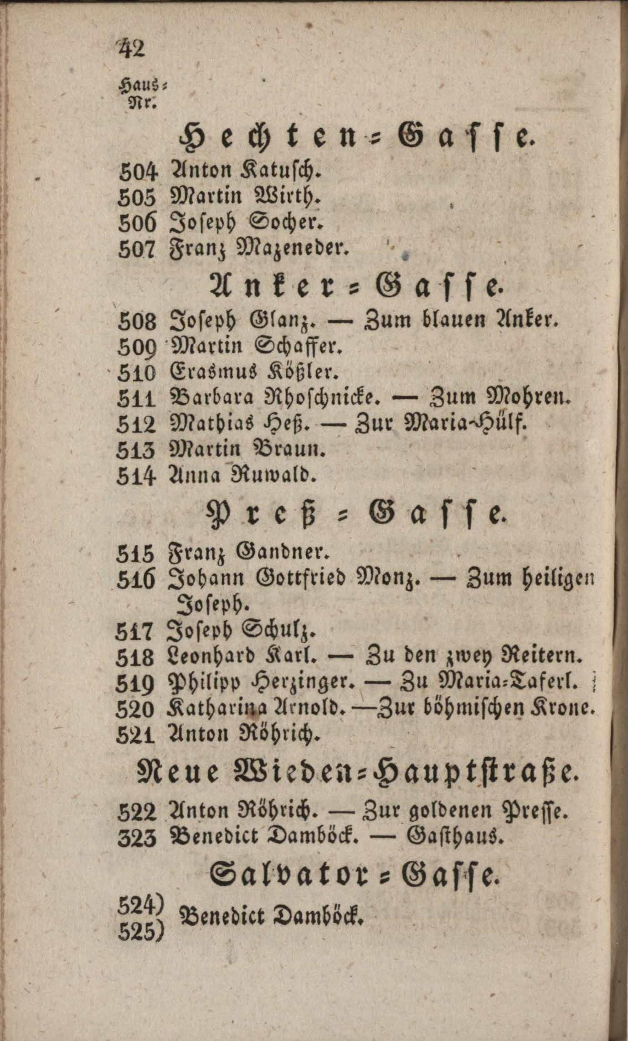 Der k.k. Polizey-Bezirk Wieden nach der Numerirung, mit den Namen der Hausbesitzer, und Angabe der Hausschilde : Wieden, Schaumburgergrund, Hungenbrunn, Laurenzergrund, Matzleinsdorf, Nikolsdorf, Margarethen, Reinprechtsdorf, Hundsthurm ; mit einem Grundrisse