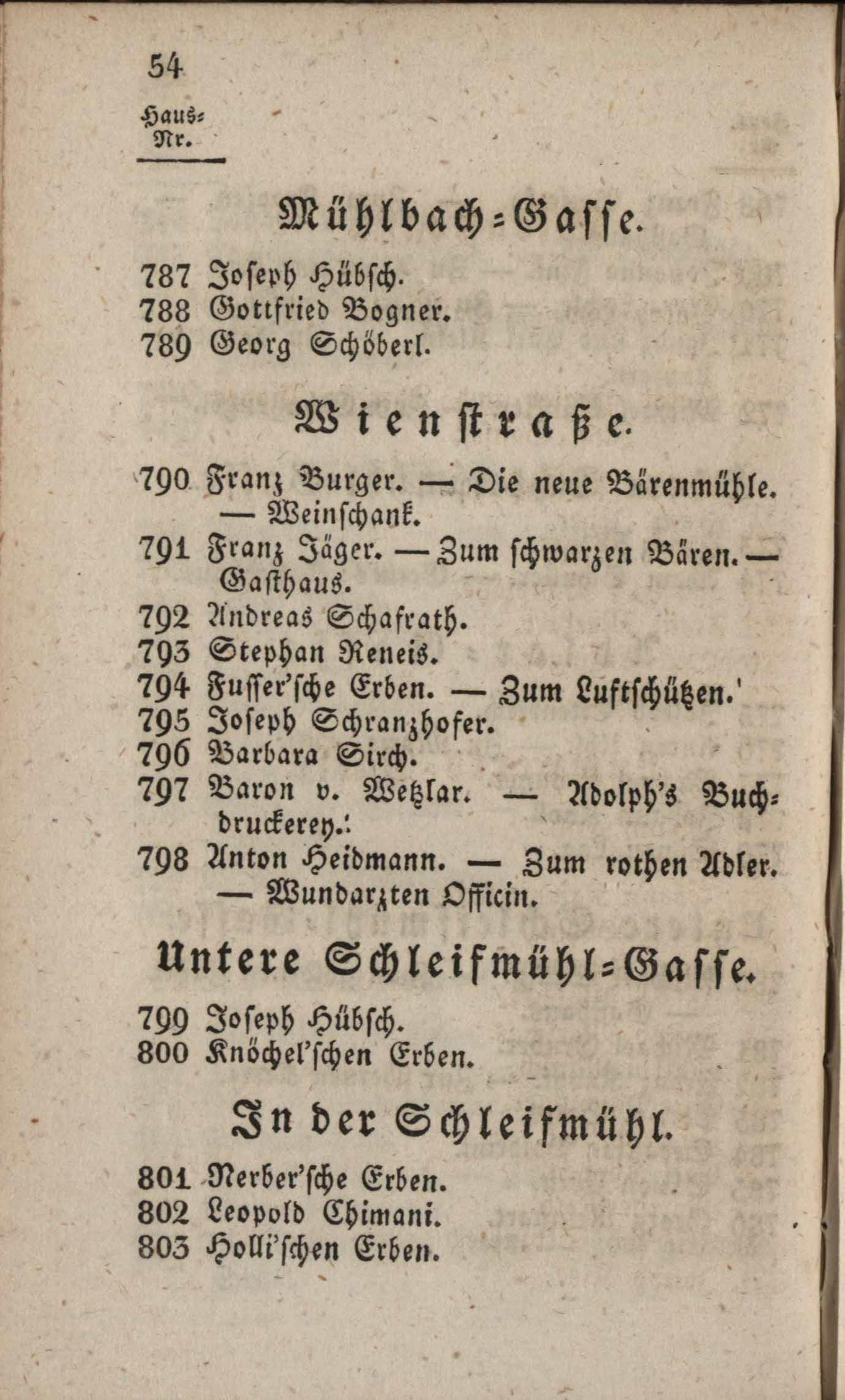 Der k.k. Polizey-Bezirk Wieden nach der Numerirung, mit den Namen der Hausbesitzer, und Angabe der Hausschilde : Wieden, Schaumburgergrund, Hungenbrunn, Laurenzergrund, Matzleinsdorf, Nikolsdorf, Margarethen, Reinprechtsdorf, Hundsthurm ; mit einem Grundrisse