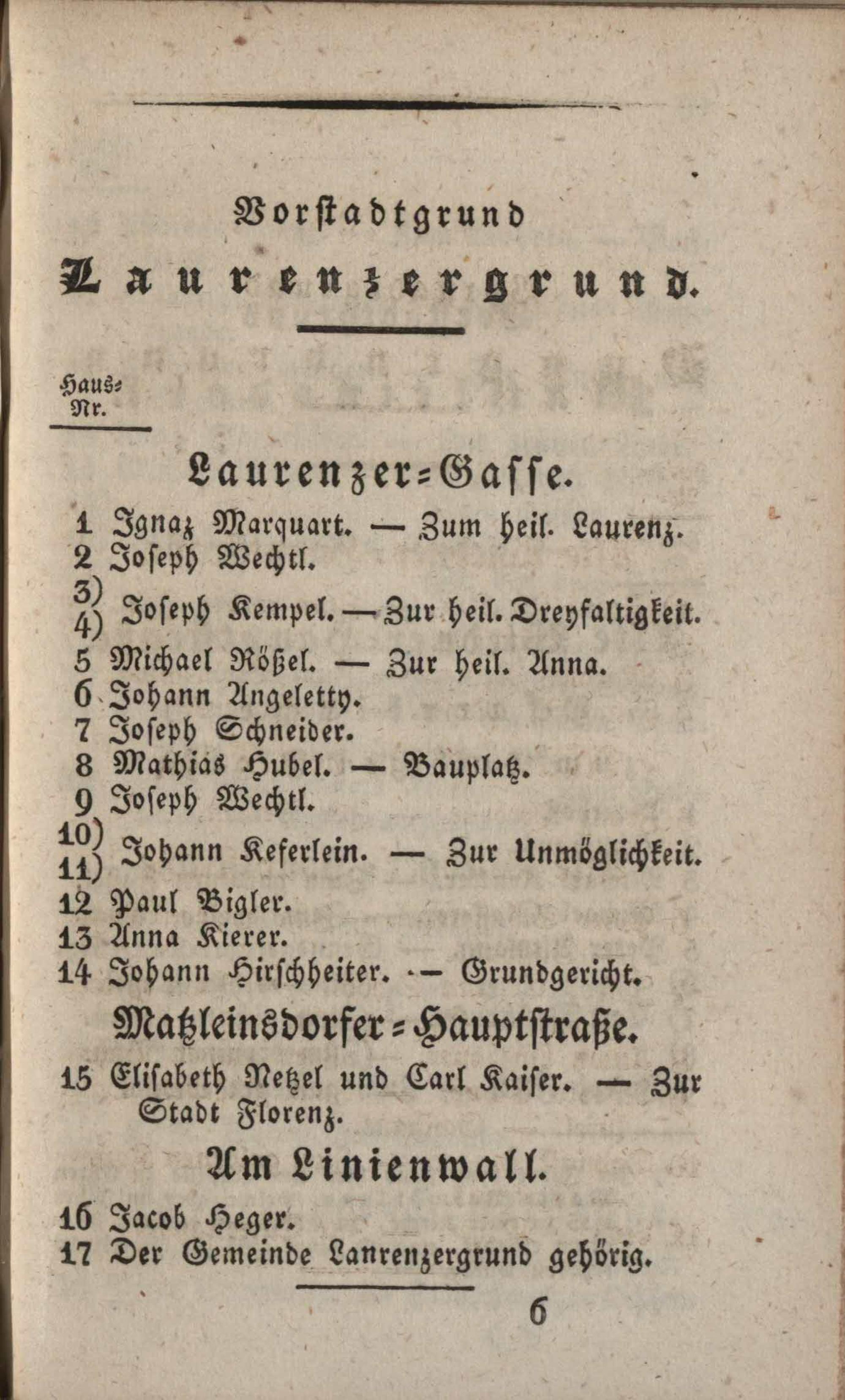Der k.k. Polizey-Bezirk Wieden nach der Numerirung, mit den Namen der Hausbesitzer, und Angabe der Hausschilde : Wieden, Schaumburgergrund, Hungenbrunn, Laurenzergrund, Matzleinsdorf, Nikolsdorf, Margarethen, Reinprechtsdorf, Hundsthurm ; mit einem Grundrisse