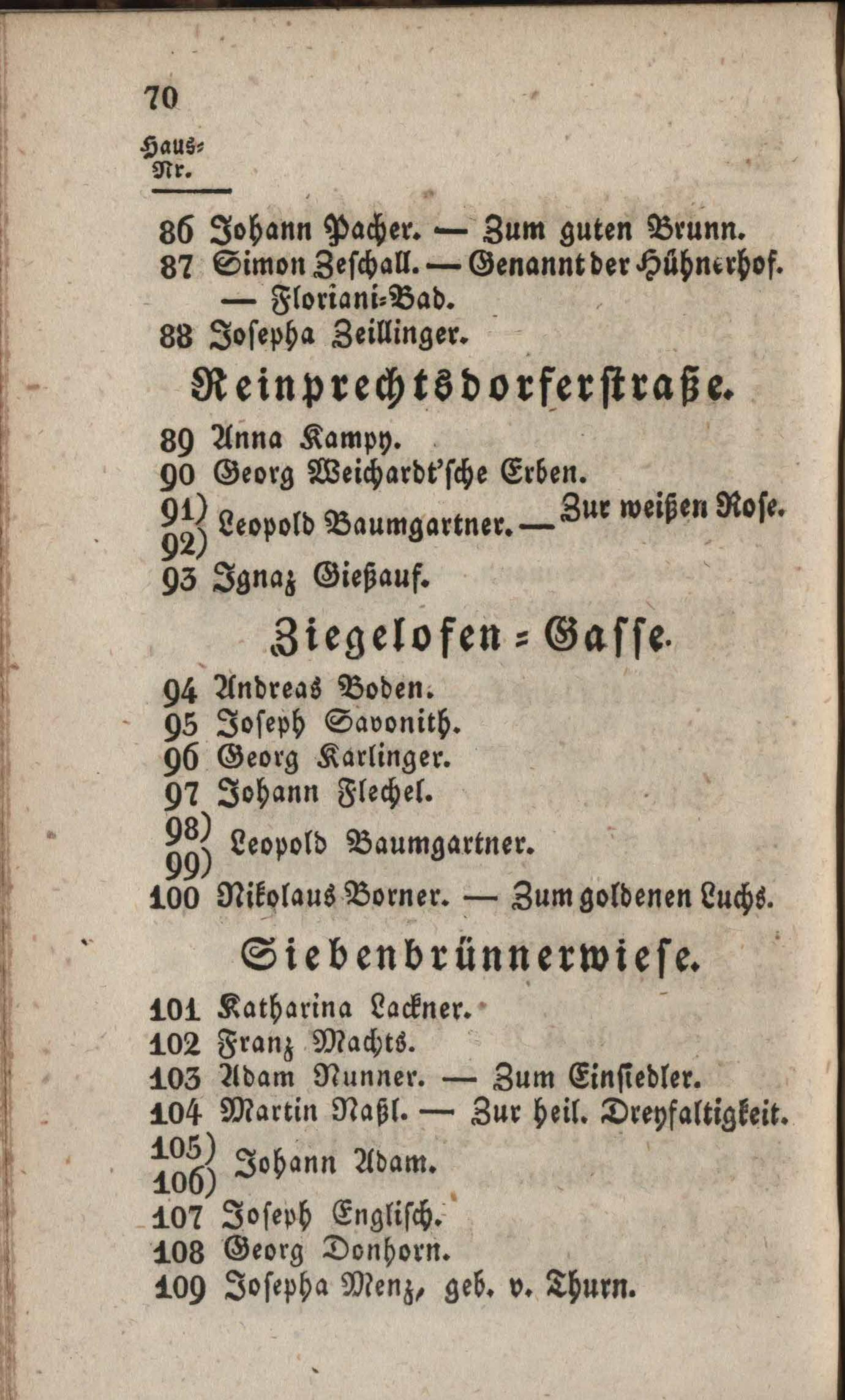 Der k.k. Polizey-Bezirk Wieden nach der Numerirung, mit den Namen der Hausbesitzer, und Angabe der Hausschilde : Wieden, Schaumburgergrund, Hungenbrunn, Laurenzergrund, Matzleinsdorf, Nikolsdorf, Margarethen, Reinprechtsdorf, Hundsthurm ; mit einem Grundrisse