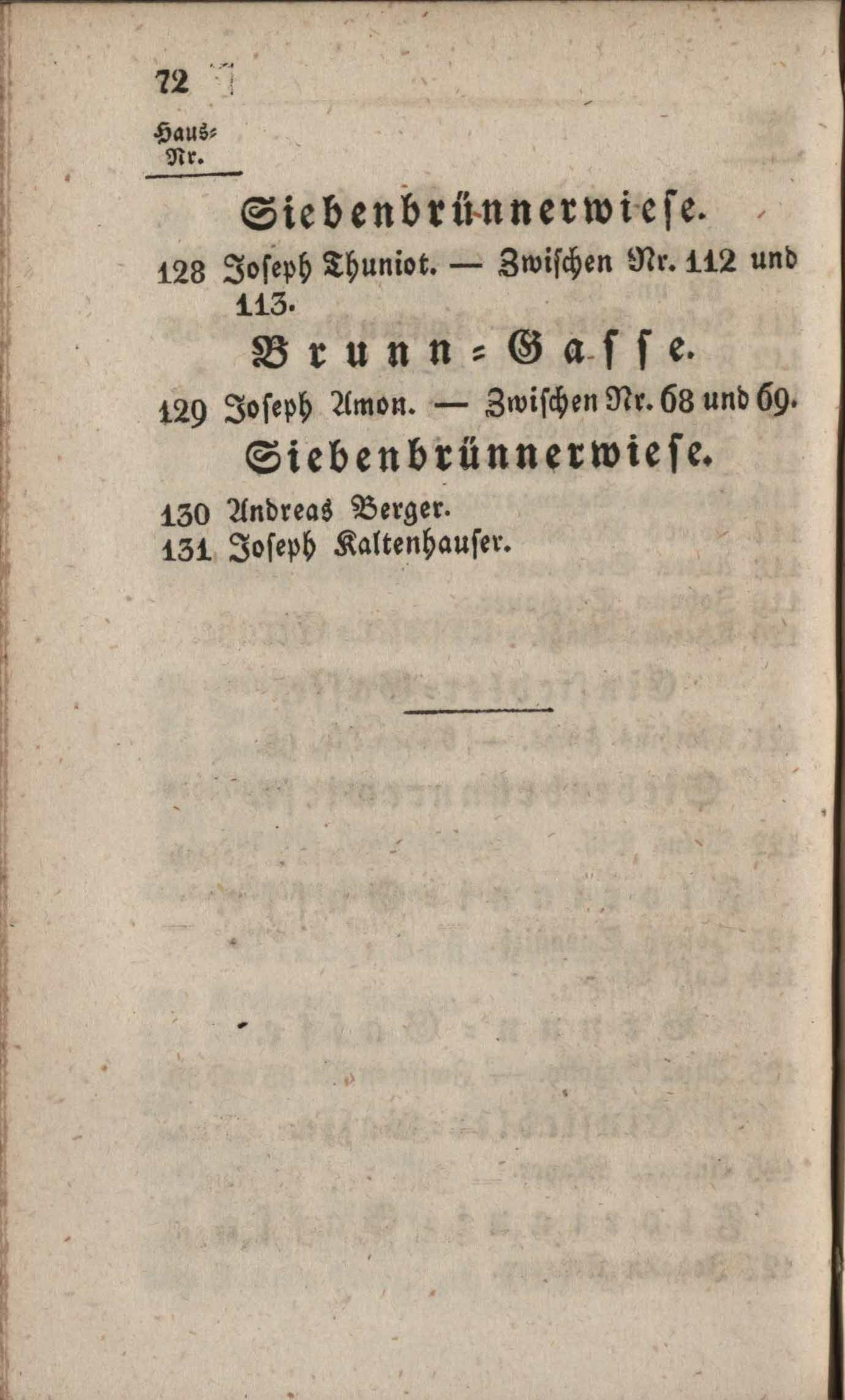 Der k.k. Polizey-Bezirk Wieden nach der Numerirung, mit den Namen der Hausbesitzer, und Angabe der Hausschilde : Wieden, Schaumburgergrund, Hungenbrunn, Laurenzergrund, Matzleinsdorf, Nikolsdorf, Margarethen, Reinprechtsdorf, Hundsthurm ; mit einem Grundrisse
