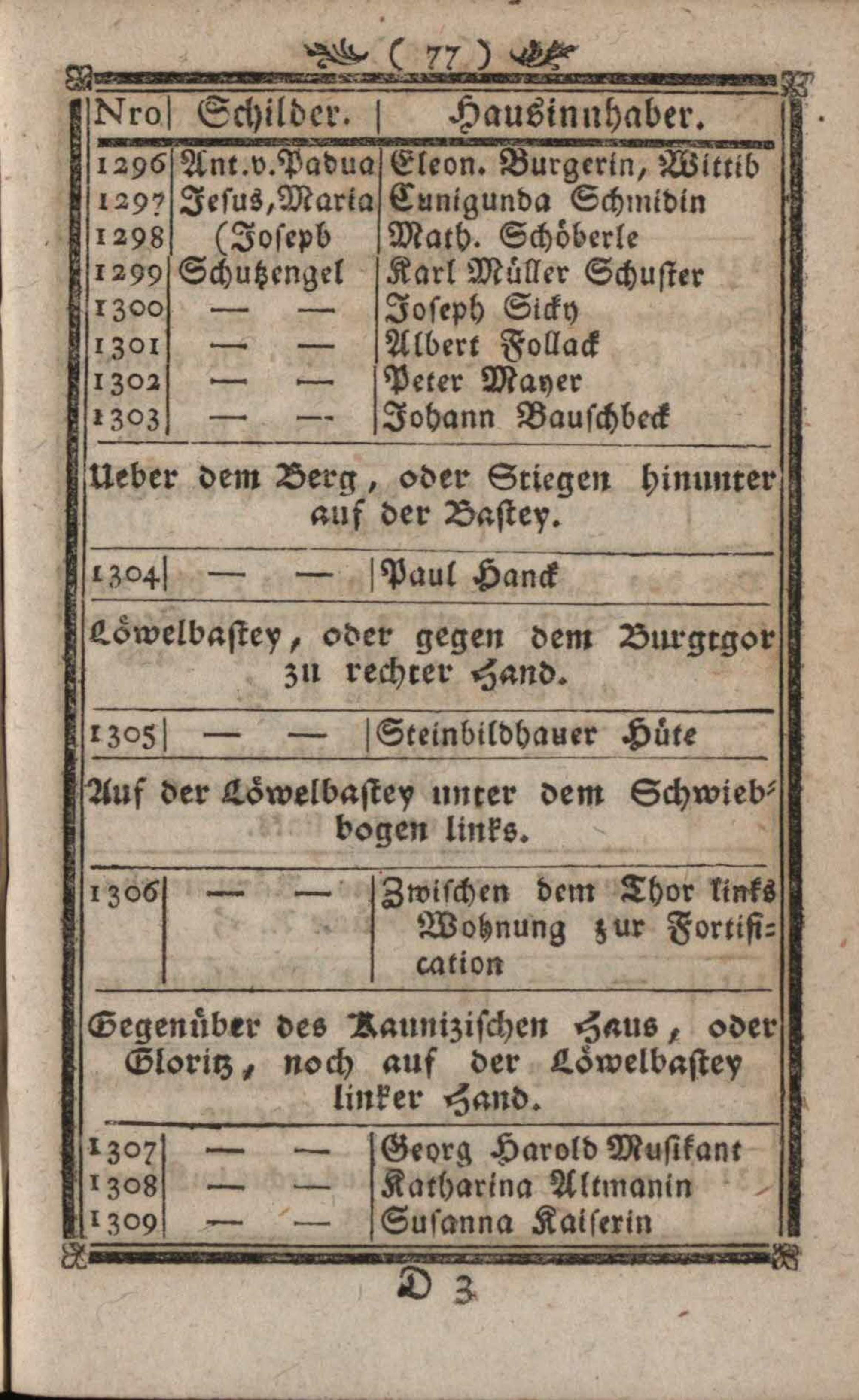 Verzeichniß der in der kais. kön. Haupt- und Residenzstadt Wien befindlichen Gassen, numerirten Häuser, Innhaber und ihrer Schilder