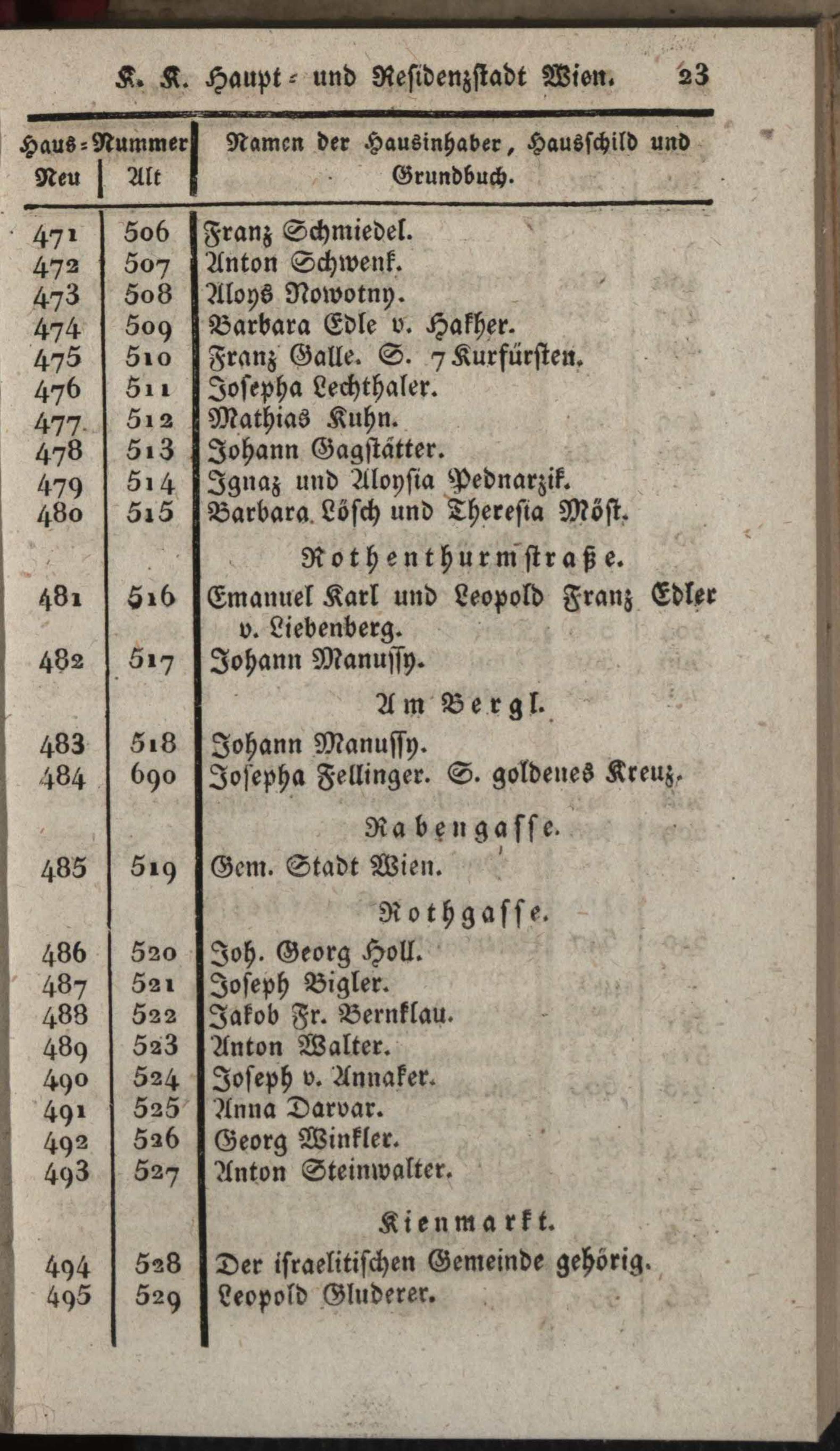 Vollständiges Verzeichniß aller in der k. k. Haupt- und Residenzstadt Wien und ihren Vorstädten befindlichen Straßen, Gassen, Plätze und Häuser, dann derselben Schilde und Eigenthümer / hrsg. von Mathias Guetjahr