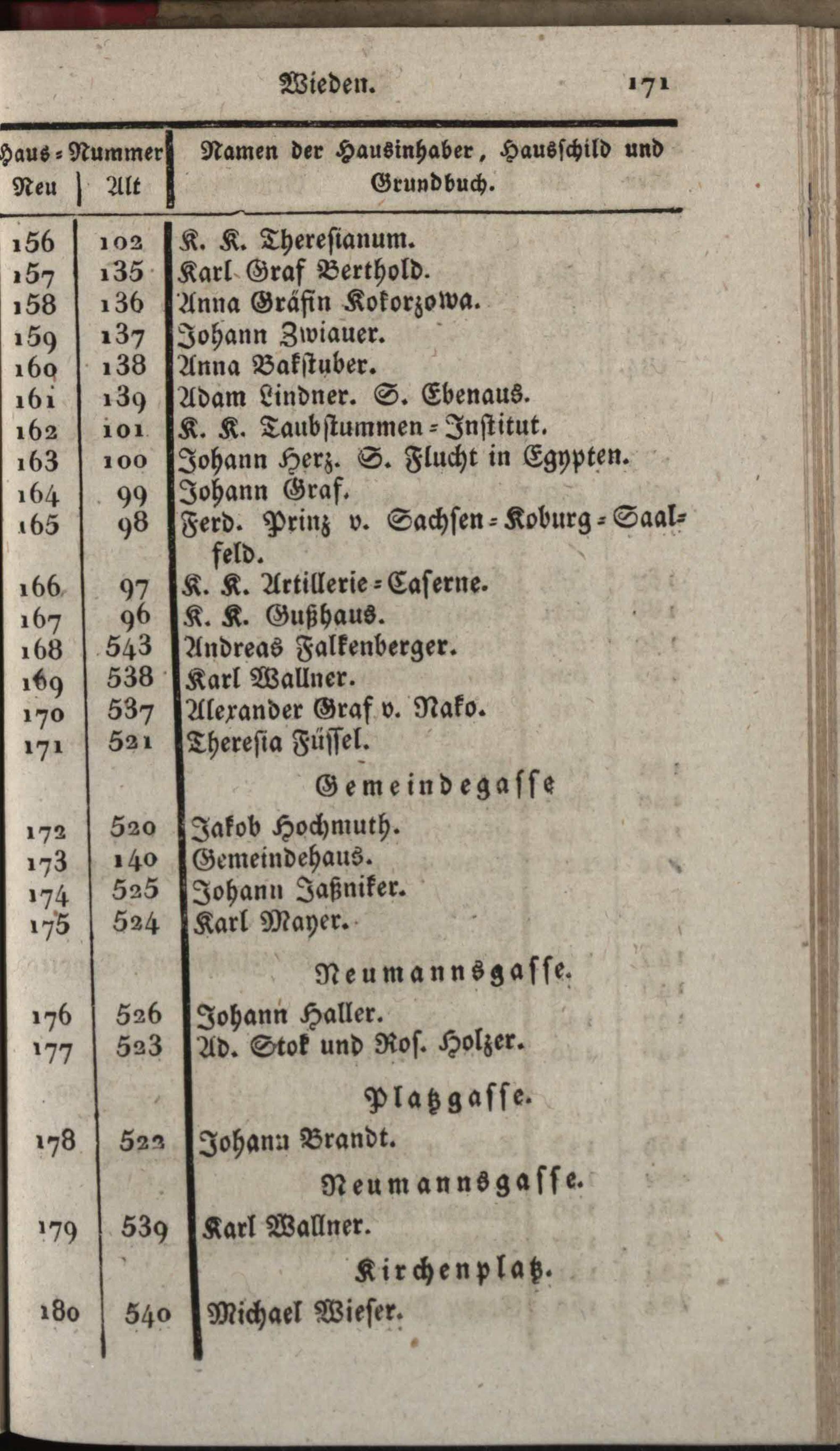 Vollständiges Verzeichniß aller in der k. k. Haupt- und Residenzstadt Wien und ihren Vorstädten befindlichen Straßen, Gassen, Plätze und Häuser, dann derselben Schilde und Eigenthümer / hrsg. von Mathias Guetjahr