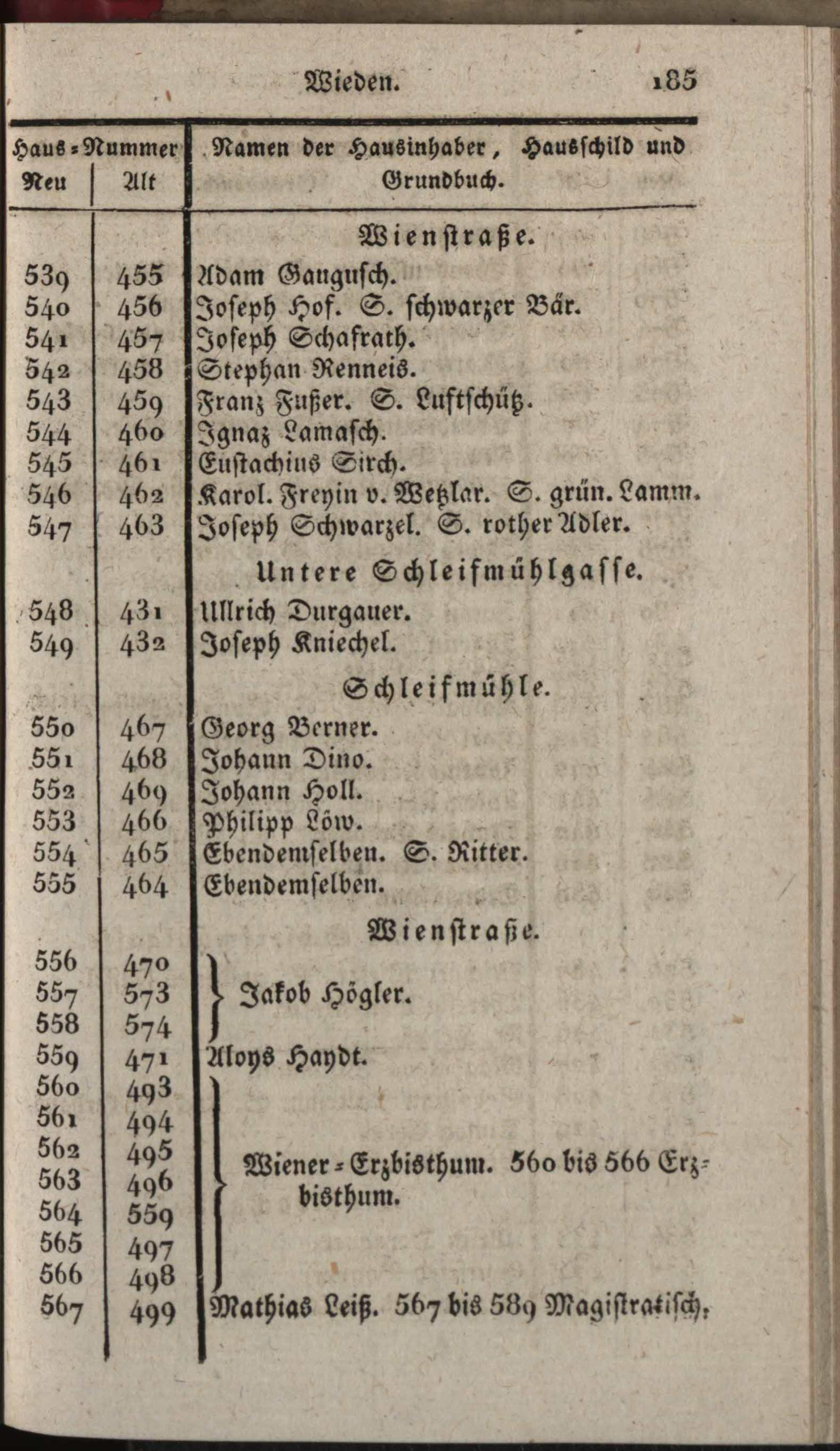 Vollständiges Verzeichniß aller in der k. k. Haupt- und Residenzstadt Wien und ihren Vorstädten befindlichen Straßen, Gassen, Plätze und Häuser, dann derselben Schilde und Eigenthümer / hrsg. von Mathias Guetjahr