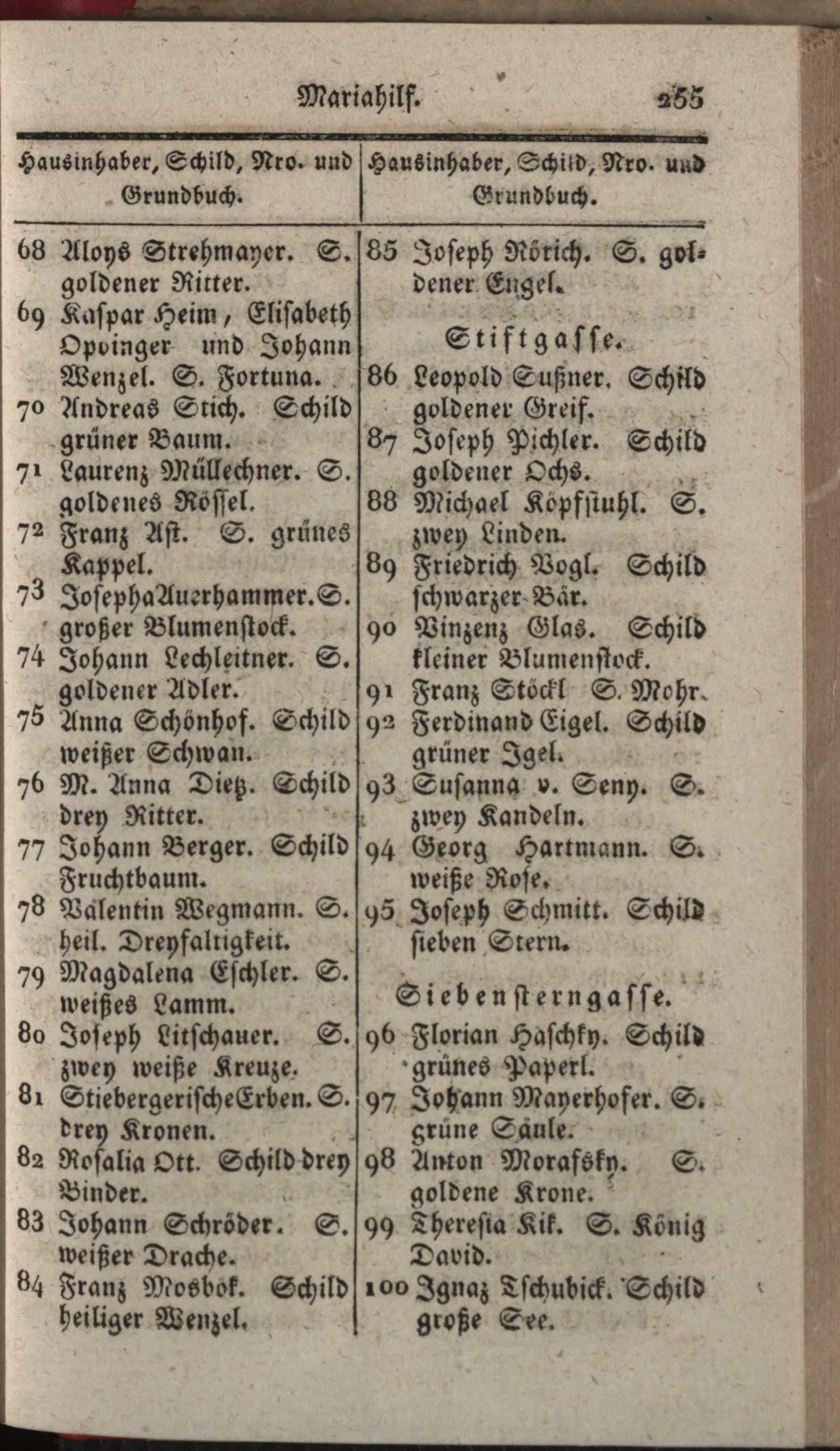 Vollständiges Verzeichniß aller in der k. k. Haupt- und Residenzstadt Wien und ihren Vorstädten befindlichen Straßen, Gassen, Plätze und Häuser, dann derselben Schilde und Eigenthümer / hrsg. von Mathias Guetjahr