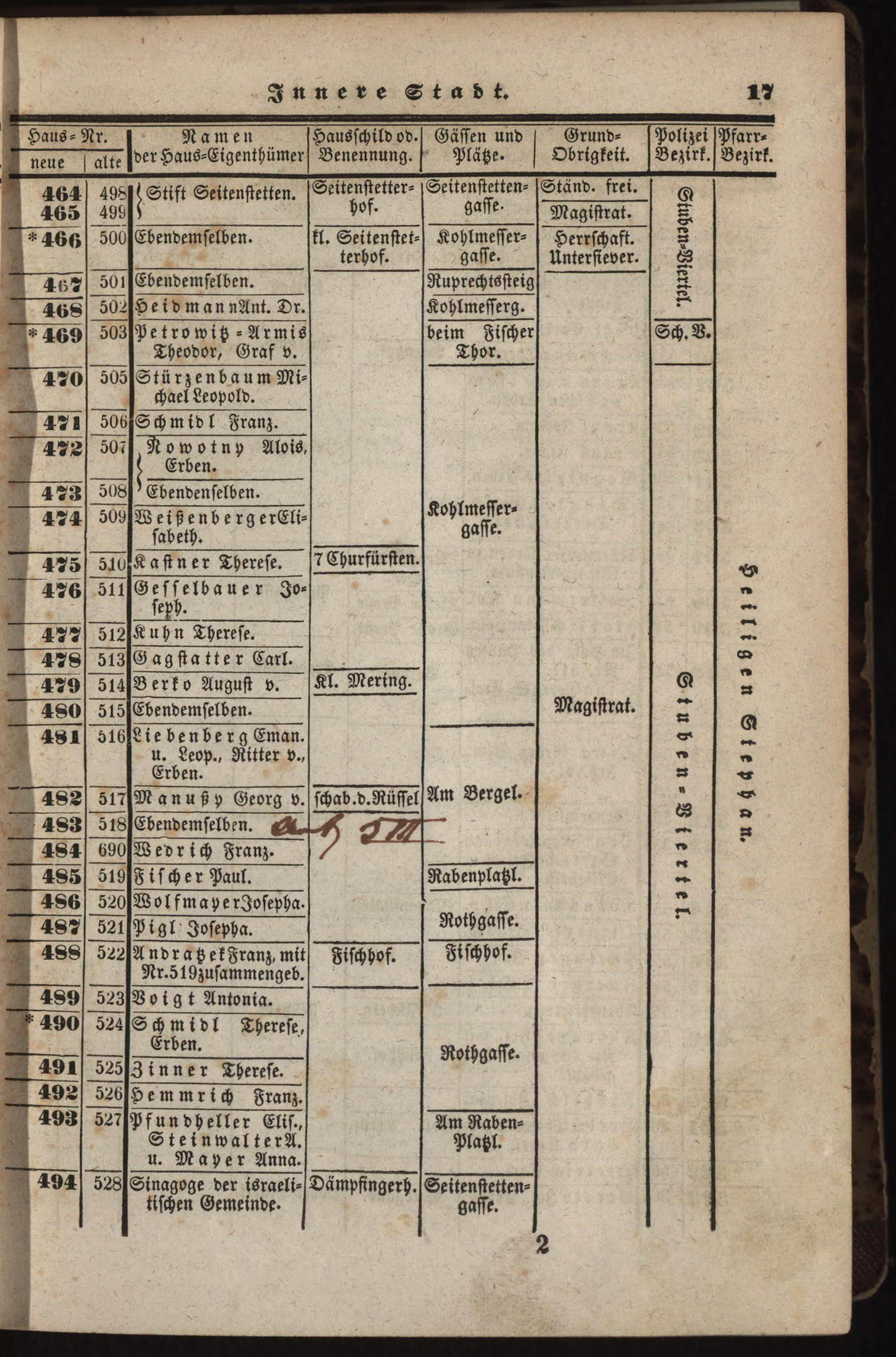 Neues, verbessertes und vermehrtes Häuser-Schema der k. k. Haupt- und Residenzstadt Wien : mit ihren 34 Vorstädten, allen Neubauten und den angränzenden nahen Ortschaften, welche noch zu den Polizei-Bezirken Wiens gehören, als: Brigittenau, Währing, Hernals, Neulerchenfeld, Fünf- und Sechshaus, Rustendorf, Braunhirschen, Reindorf, dann Gaudenzdorf ; mit genauer Angabe der Haus-Nummern...
