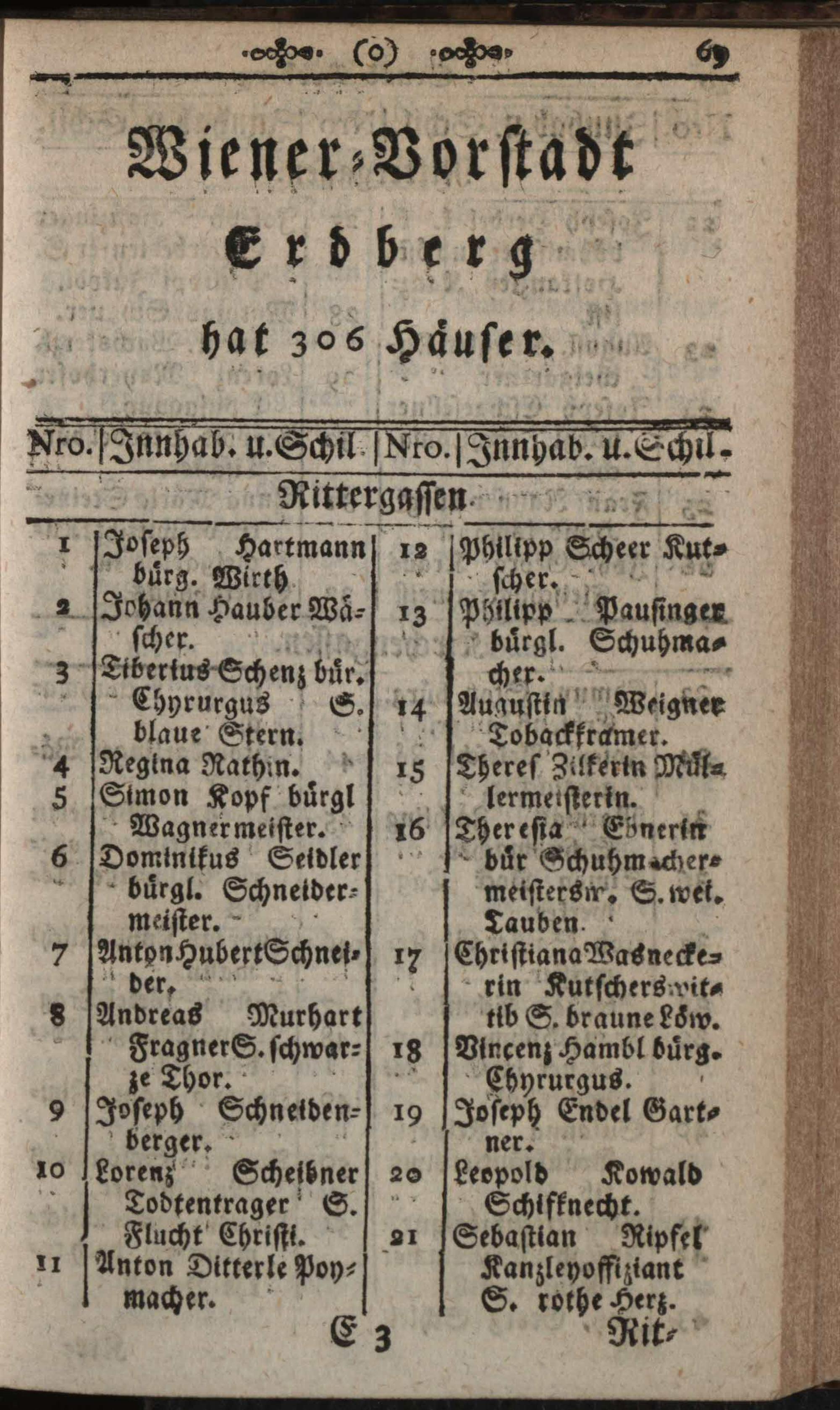 Verzeichniß der in der Kaiserl. Königl. Haupt- und Residenzstadt Wien, sammt dazu gehörigen Vorstädten und Gründen, befindlichen numerirten Häusern, derselben wahrhafte Eigenthümer, und deren Konditionen, nebst Schildern und Plätzen : Auf das genaueste nach denen Grund- und Konscriptions-Büchern entworfen / von Joseph Maximilian Fischer