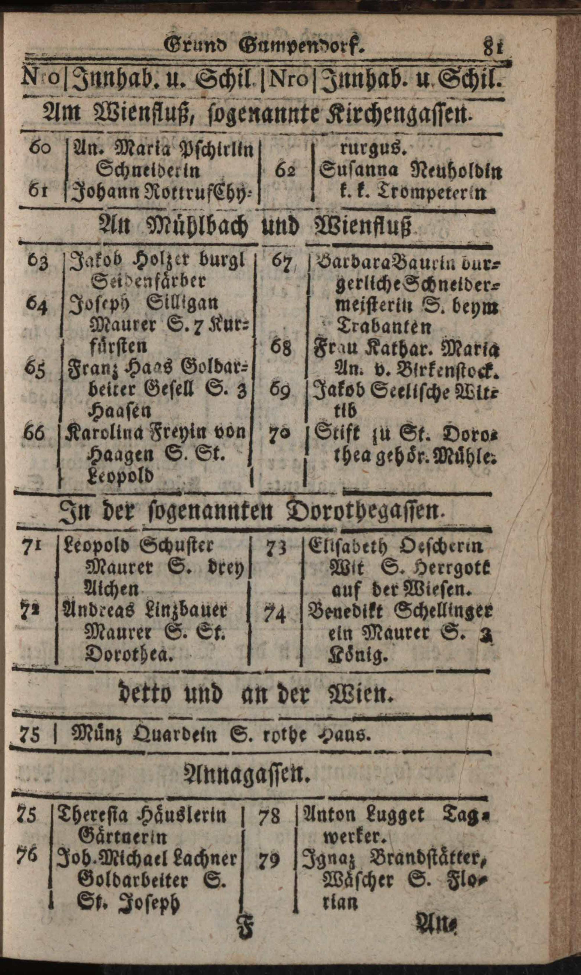 Verzeichniß der in der Kaiserl. Königl. Haupt- und Residenzstadt Wien, sammt dazu gehörigen Vorstädten und Gründen, befindlichen numerirten Häusern, derselben wahrhafte Eigenthümer, und deren Konditionen, nebst Schildern und Plätzen : Auf das genaueste nach denen Grund- und Konscriptions-Büchern entworfen / von Joseph Maximilian Fischer