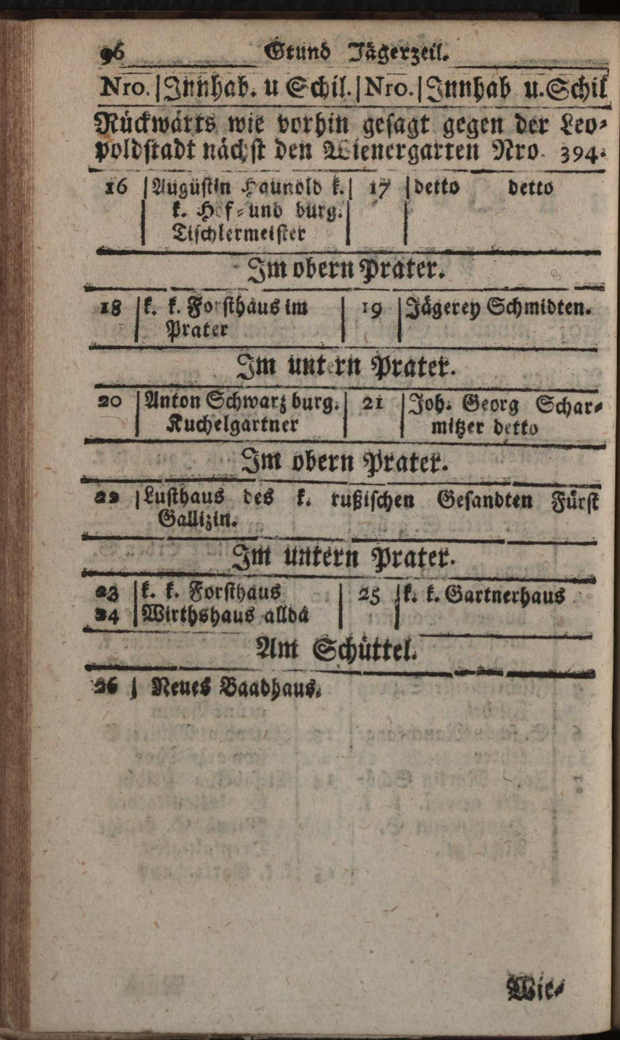 Verzeichniß der in der Kaiserl. Königl. Haupt- und Residenzstadt Wien, sammt dazu gehörigen Vorstädten und Gründen, befindlichen numerirten Häusern, derselben wahrhafte Eigenthümer, und deren Konditionen, nebst Schildern und Plätzen : Auf das genaueste nach denen Grund- und Konscriptions-Büchern entworfen / von Joseph Maximilian Fischer