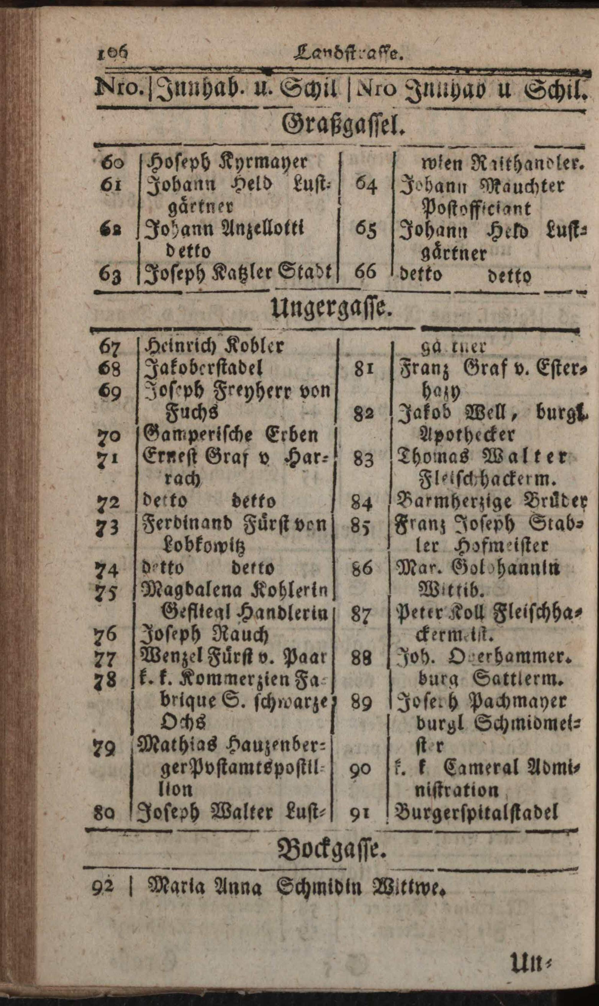 Verzeichniß der in der Kaiserl. Königl. Haupt- und Residenzstadt Wien, sammt dazu gehörigen Vorstädten und Gründen, befindlichen numerirten Häusern, derselben wahrhafte Eigenthümer, und deren Konditionen, nebst Schildern und Plätzen : Auf das genaueste nach denen Grund- und Konscriptions-Büchern entworfen / von Joseph Maximilian Fischer