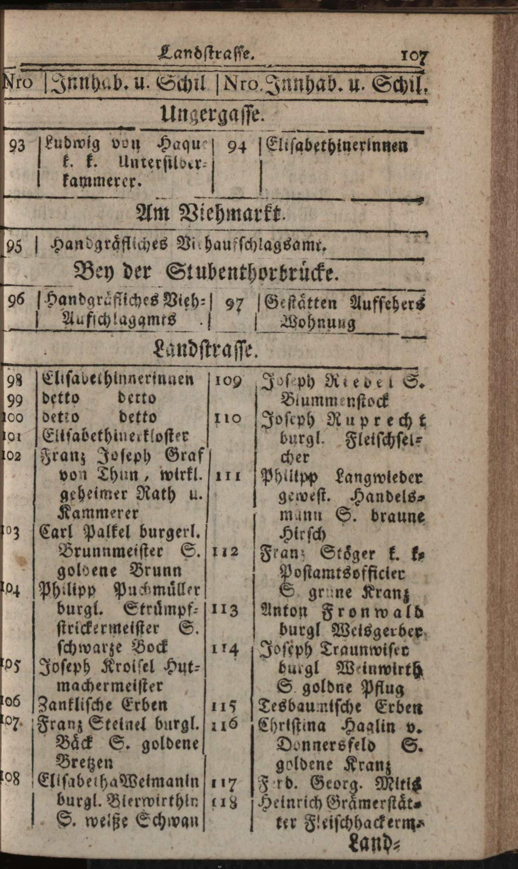 Verzeichniß der in der Kaiserl. Königl. Haupt- und Residenzstadt Wien, sammt dazu gehörigen Vorstädten und Gründen, befindlichen numerirten Häusern, derselben wahrhafte Eigenthümer, und deren Konditionen, nebst Schildern und Plätzen : Auf das genaueste nach denen Grund- und Konscriptions-Büchern entworfen / von Joseph Maximilian Fischer