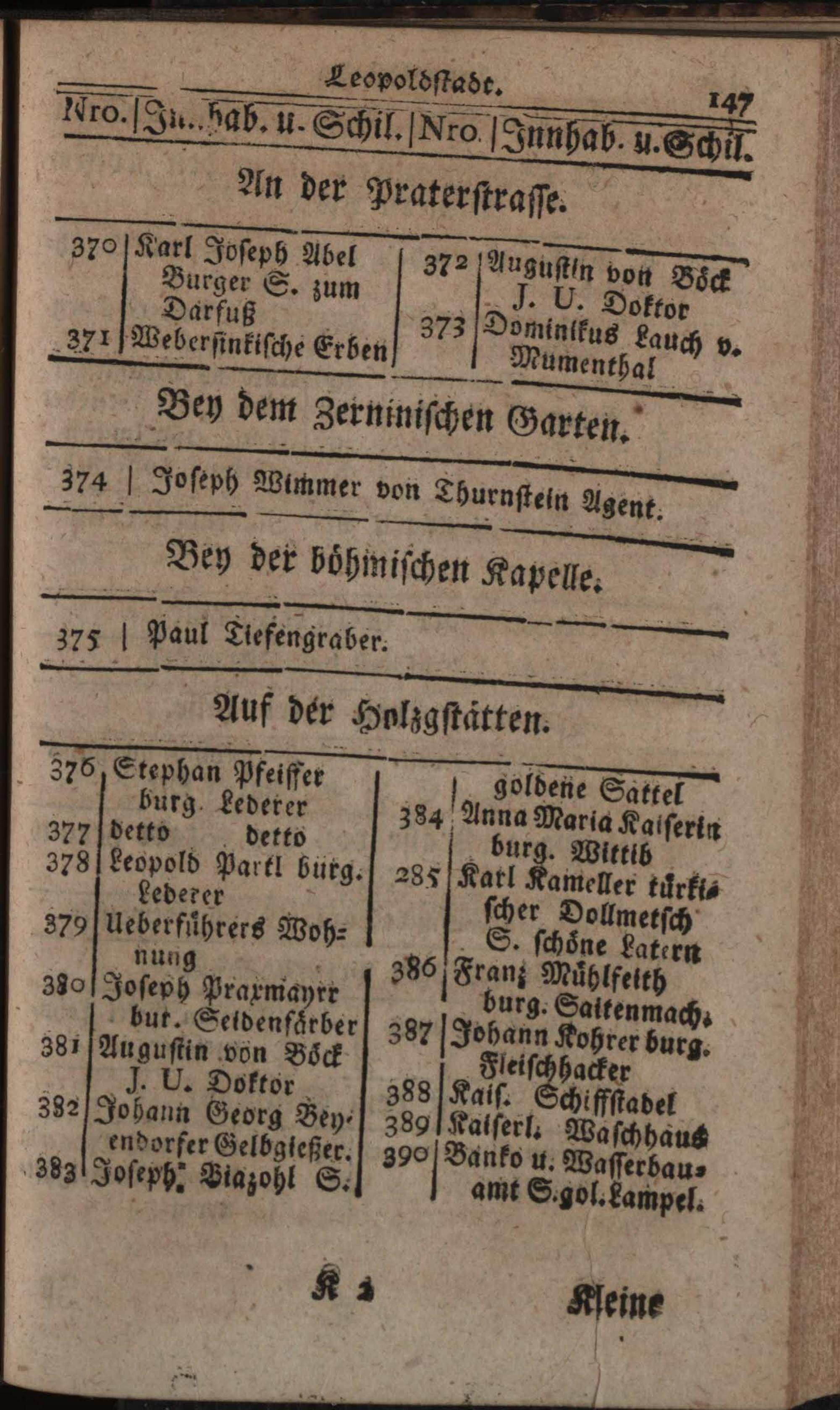 Verzeichniß der in der Kaiserl. Königl. Haupt- und Residenzstadt Wien, sammt dazu gehörigen Vorstädten und Gründen, befindlichen numerirten Häusern, derselben wahrhafte Eigenthümer, und deren Konditionen, nebst Schildern und Plätzen : Auf das genaueste nach denen Grund- und Konscriptions-Büchern entworfen / von Joseph Maximilian Fischer